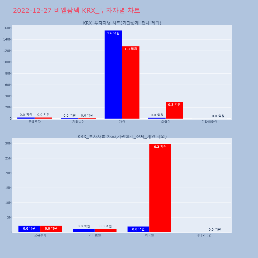 1 | 비엘팜텍, -2.50% VI 발동비엘팜텍이 VI가 발동했다. 전일 대비 2.50% 하락 | 조선경제 | 비엘팜텍 | 2022-12-26 09:05:48 |