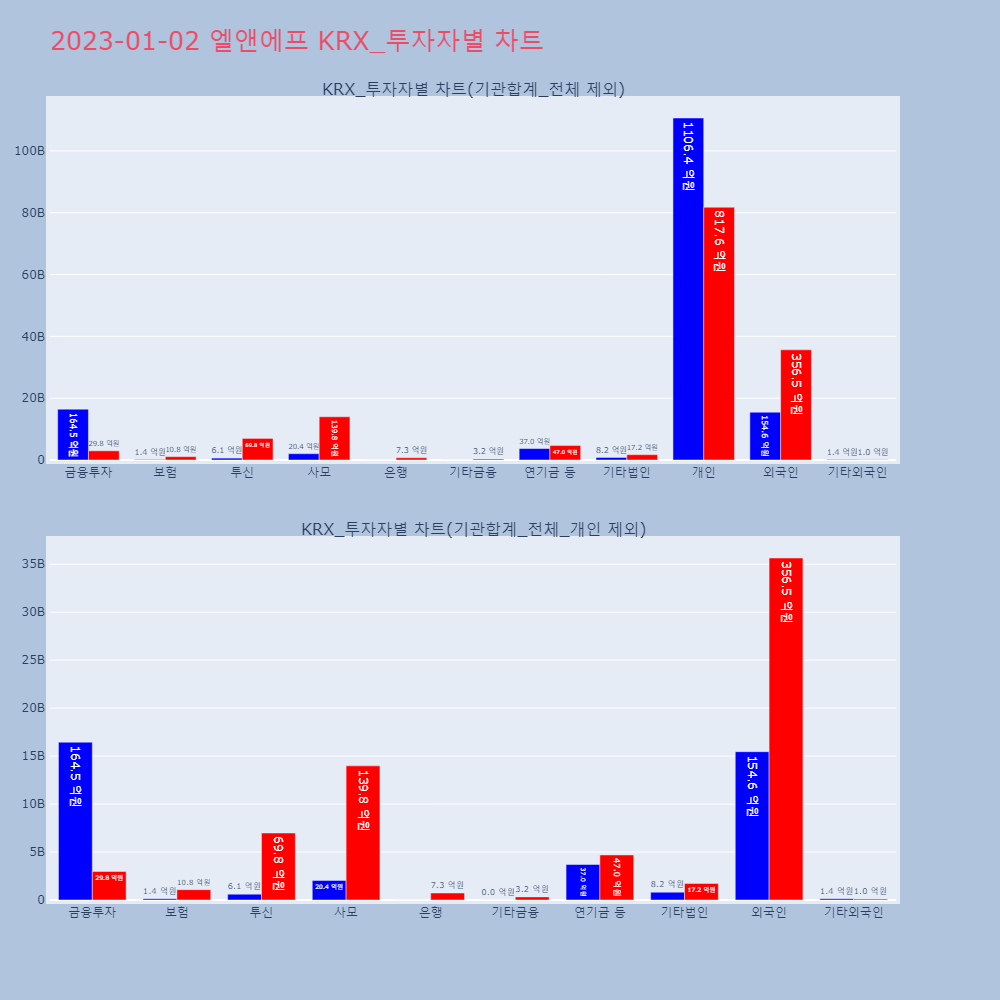 외국인 | 131,856 | 118,783 | -13,073 | 2,340,020,400 | 2,097,151,950 | -242,868,450 |