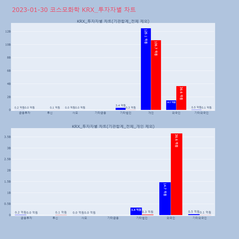 외국인 | 132,775 | 102,013 | -30,762 | 12,563,807,900 | 9,577,111,900 | -2,986,696,000 |