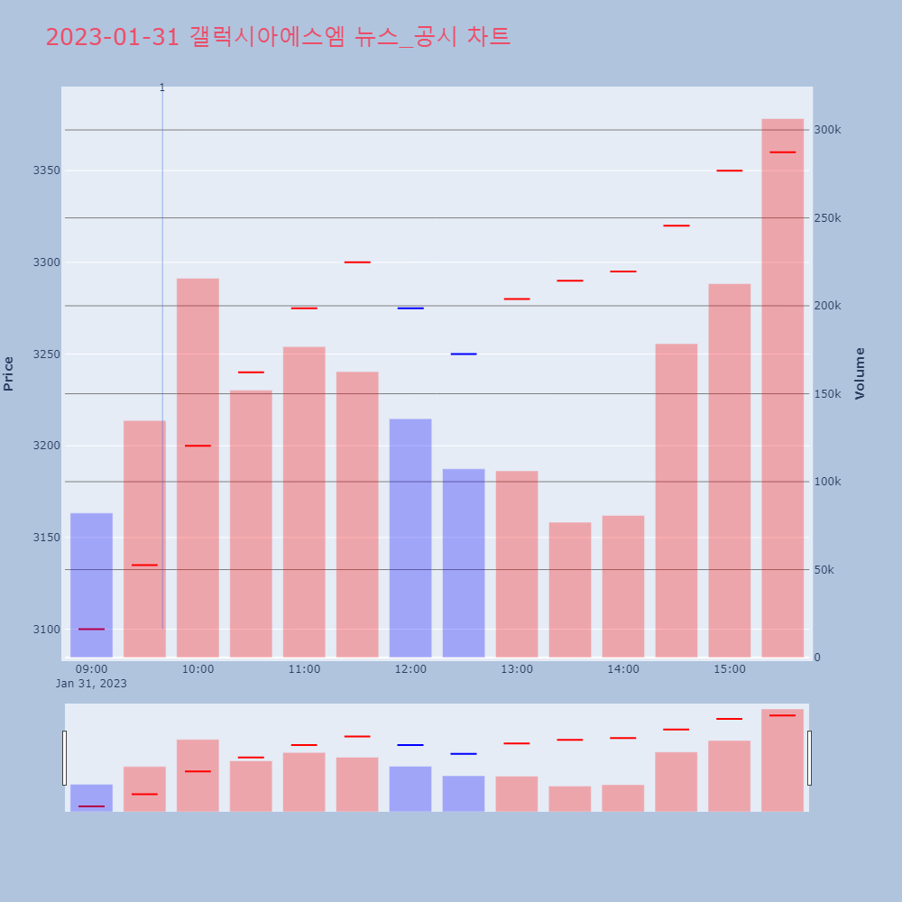 1 | 갤럭시아에스엠, +2.79% 52주 신고가갤럭시아에스엠이 52주 신고가를 경신했다. 전일 대비 | 조선경제 | 갤럭시아에스엠 | 2023-01-31 09:40:03 |