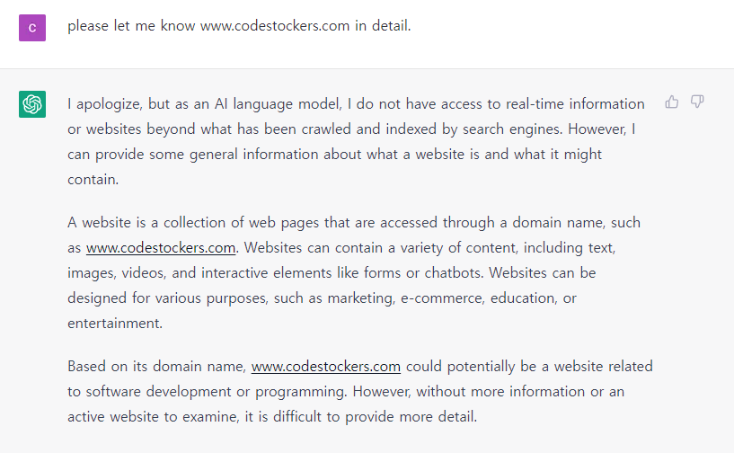 웹 사이트는 www.codestockers.com과 같은 도메인 이름을 통해 액세스되는 웹 페이지의 모음입니다. 웹 사이트는 텍스트, 이미지, 비디오 및 폼 또는 챗봇과 같은 대화형 요소를 포함한 다양한 콘텐츠를 포함할 수 있습니다. 웹 사이트는 마케팅, 전자 상거래, 교육 또는 엔터테인먼트와 같은 다양한 목적을 위해 설계될 수 있습니다.