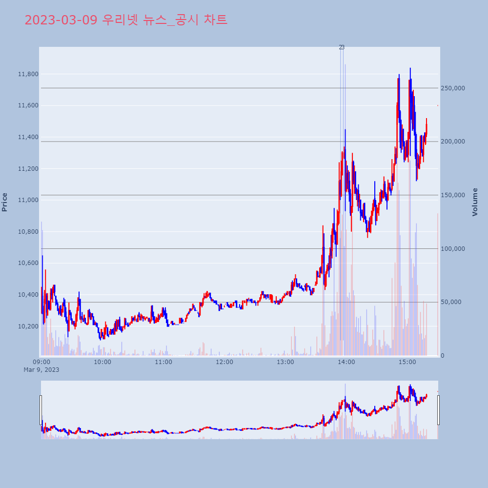 | 3 | 우리넷, +13.34% VI 발동우리넷이 VI가 발동했다. 전일 대비 13.34% 상승 | 조선경제 | 우리넷 | 2023-03-09 13:57:01 |