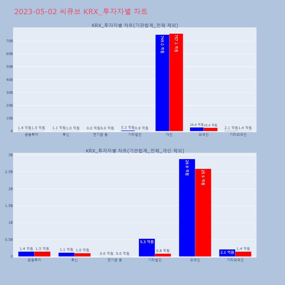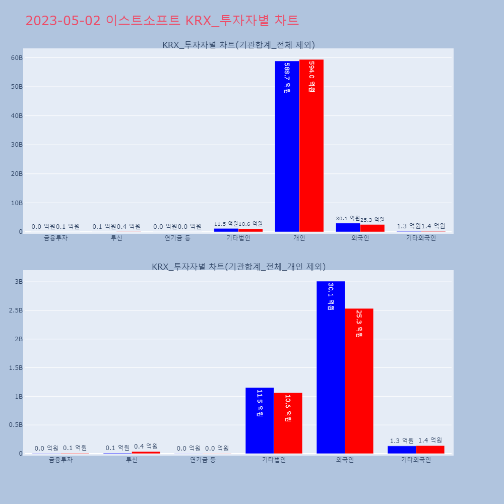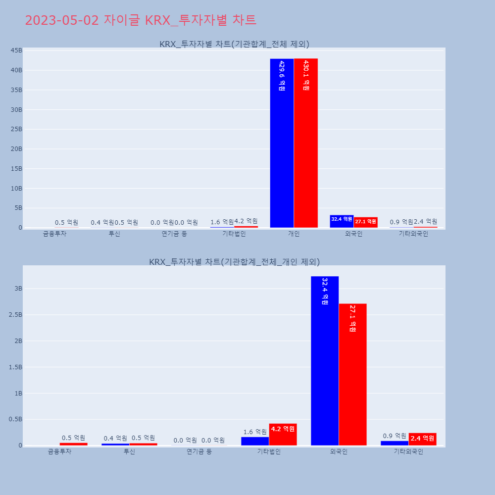 | 투자기관 | 매도량/금액(백) | 매수량/금액(백) | 순매수량/금액(백) |