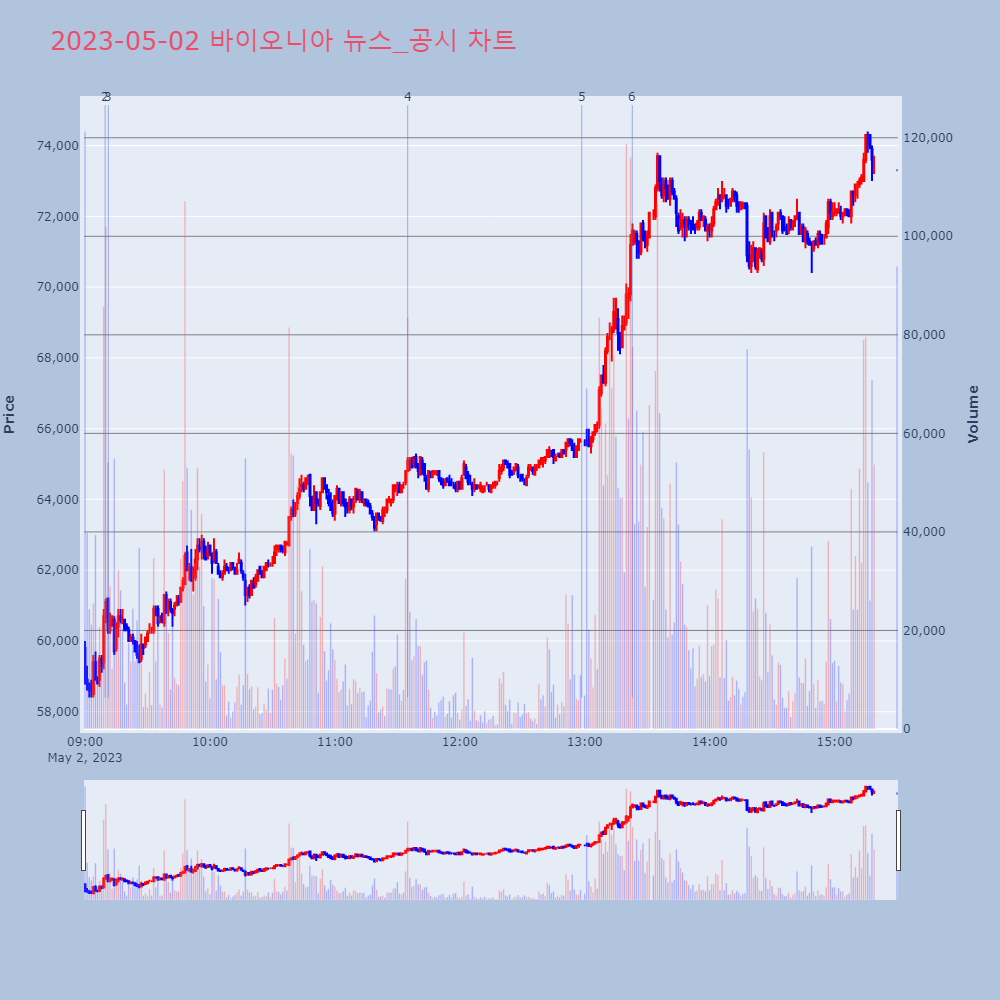 | 2023-05-02 17:15:00 | 20230502800733 | 조회공시요구(현저한시황변동) |