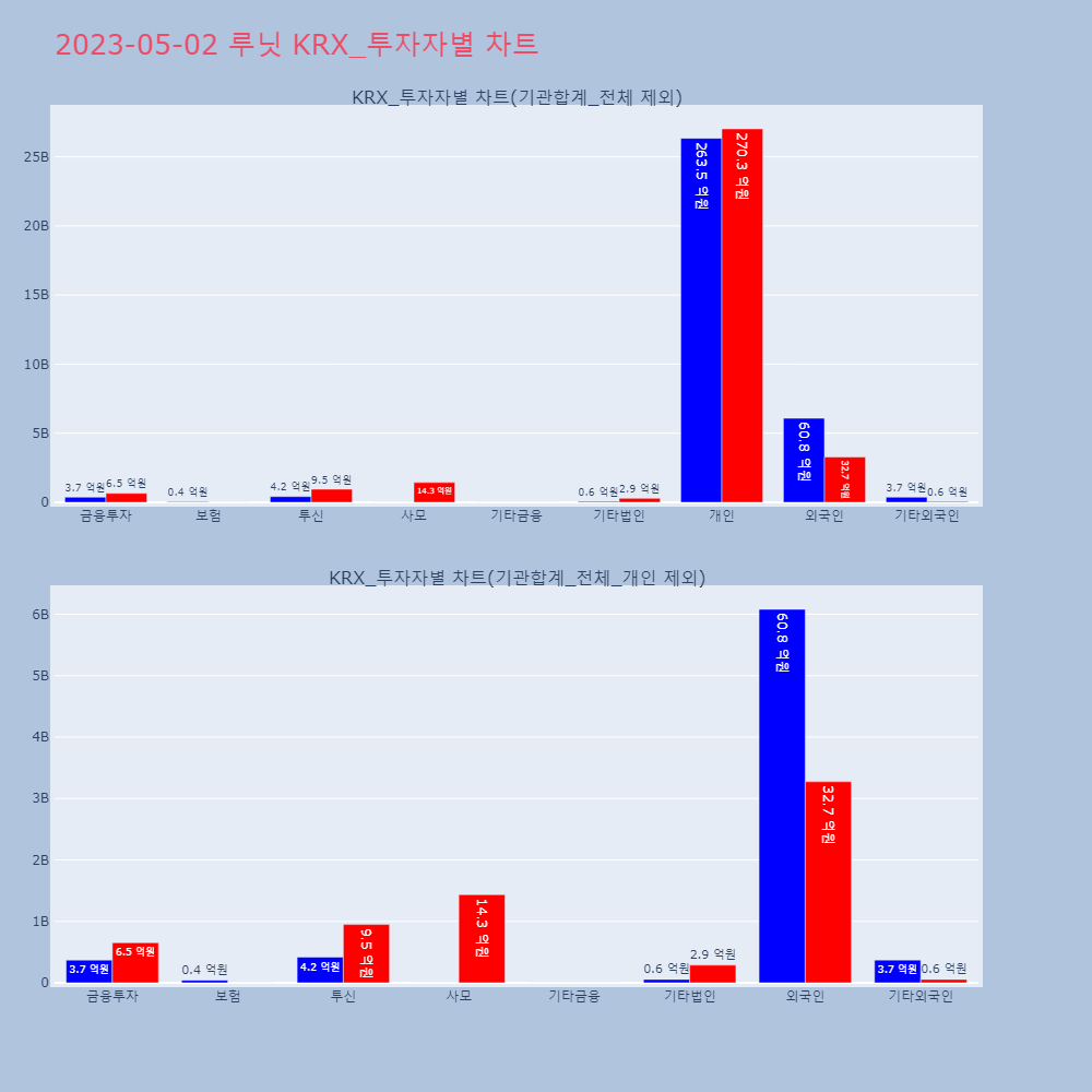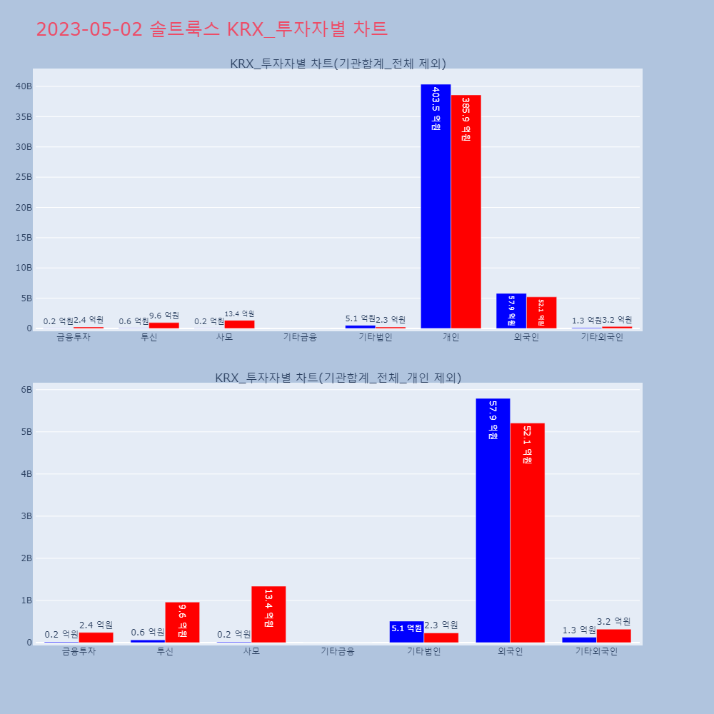 | 투자기관 | 매도량/금액(백) | 매수량/금액(백) | 순매수량/금액(백) |