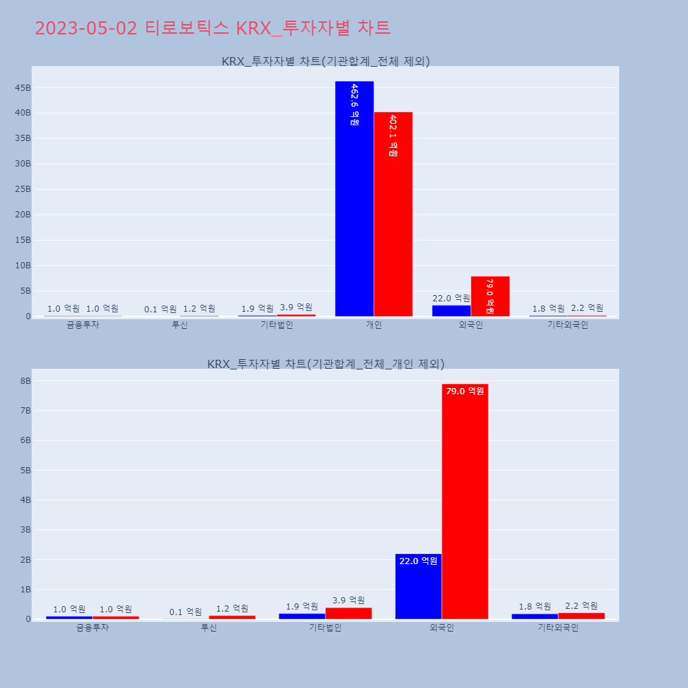 | 3 | [장중수급포착] 티로보틱스, 외국인 17.40만 주 대량 순매수... 주가 +9.20[서울=뉴스핌] 로보뉴스 = 02일 10시 15분 현재 | 뉴스핌 | 티로보틱스 | 2023-05-02 10:19:02 |
