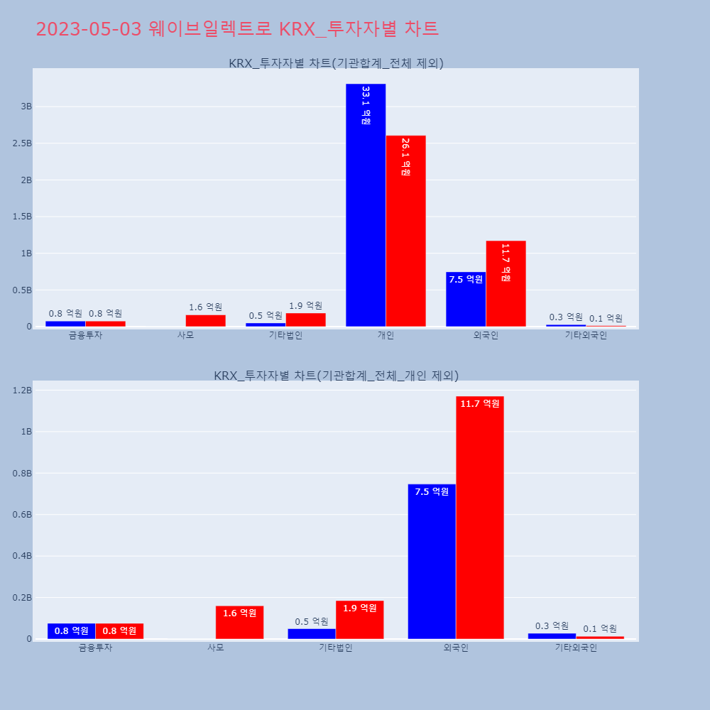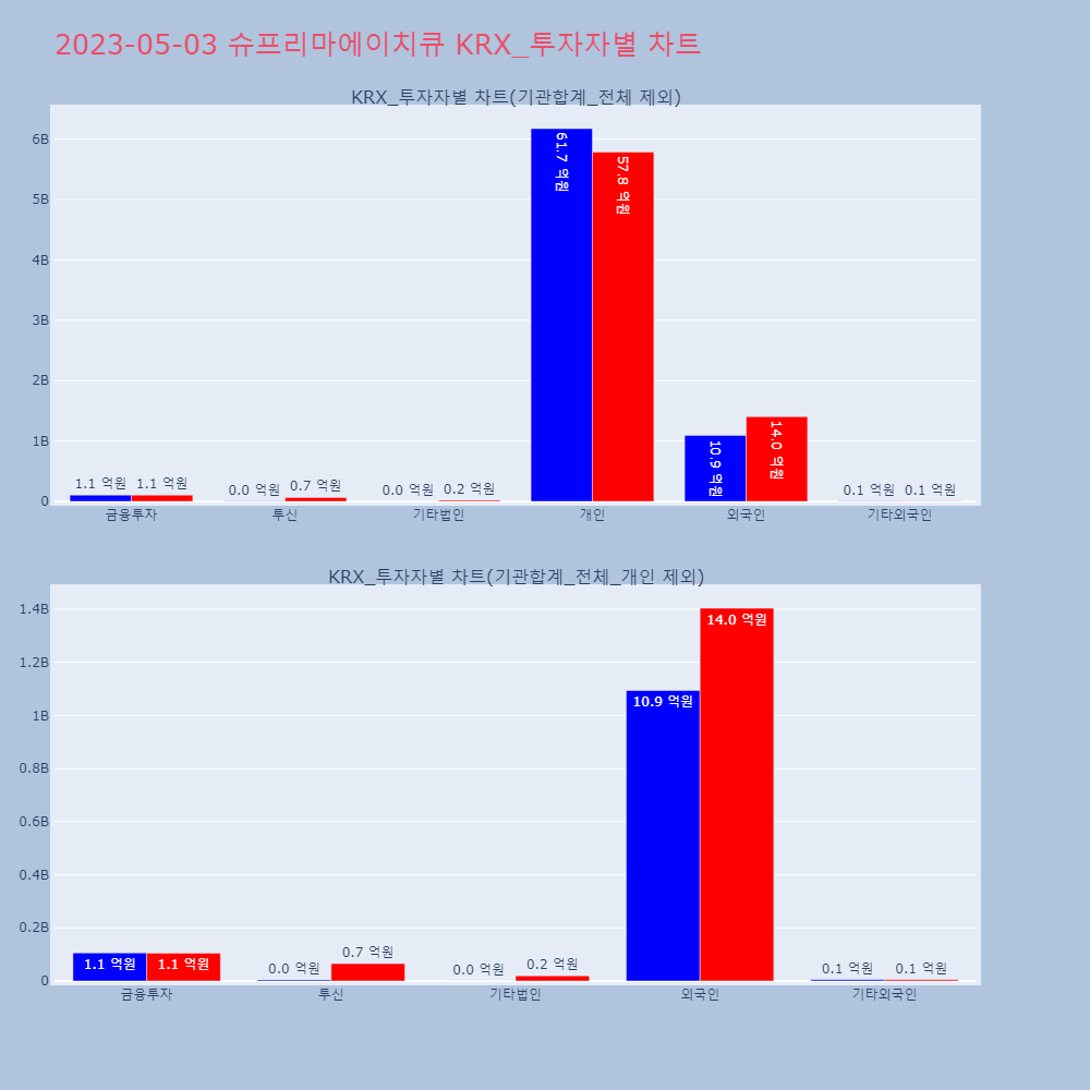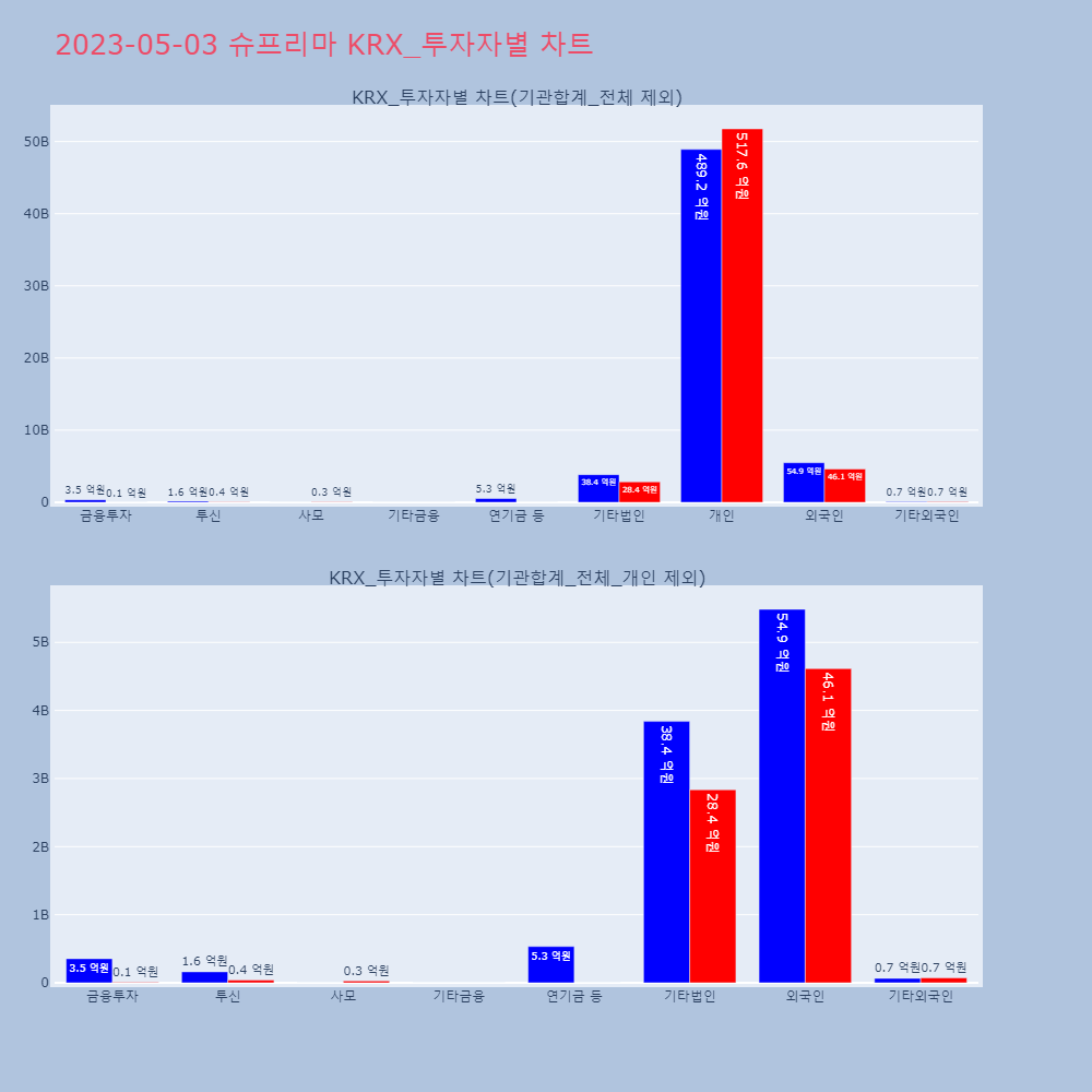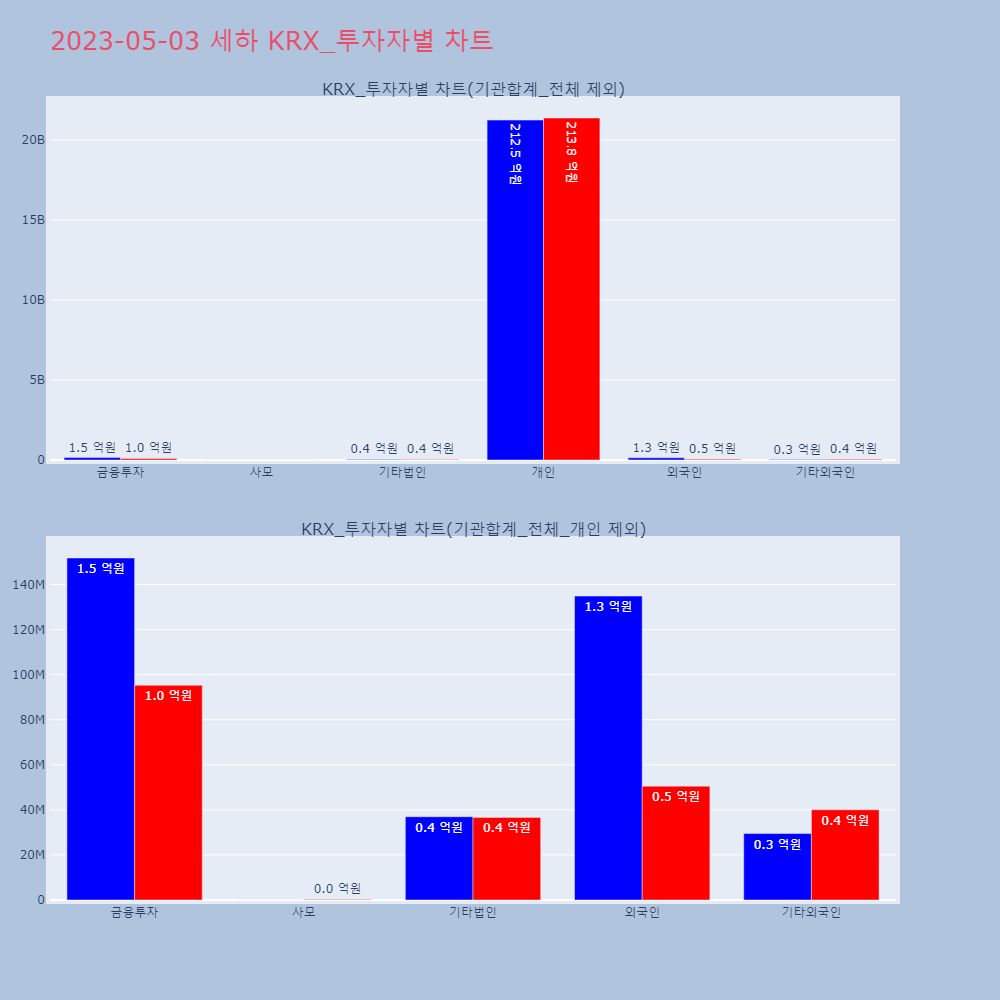 | 투자기관 | 매도량/금액(백) | 매수량/금액(백) | 순매수량/금액(백) |