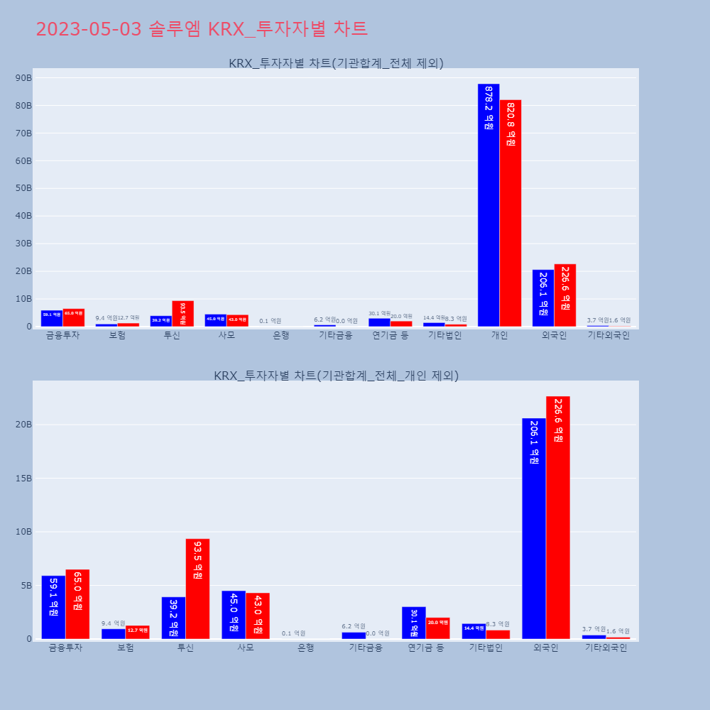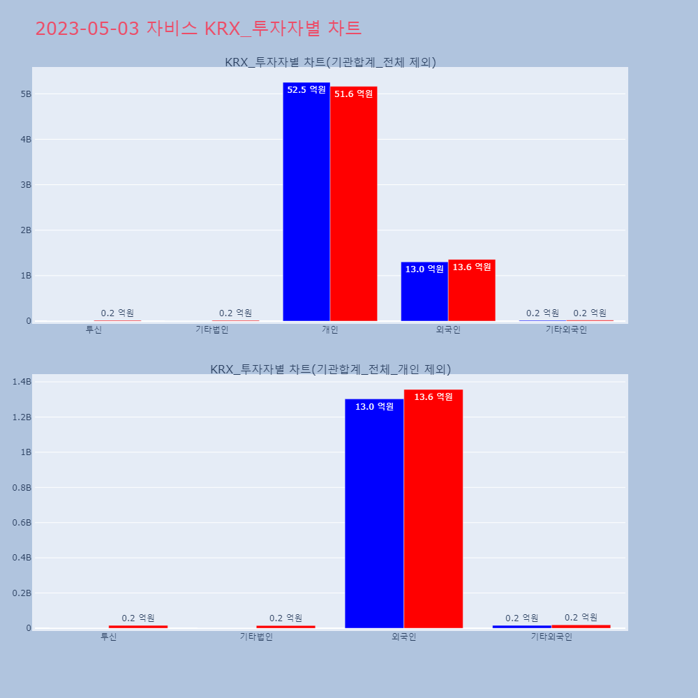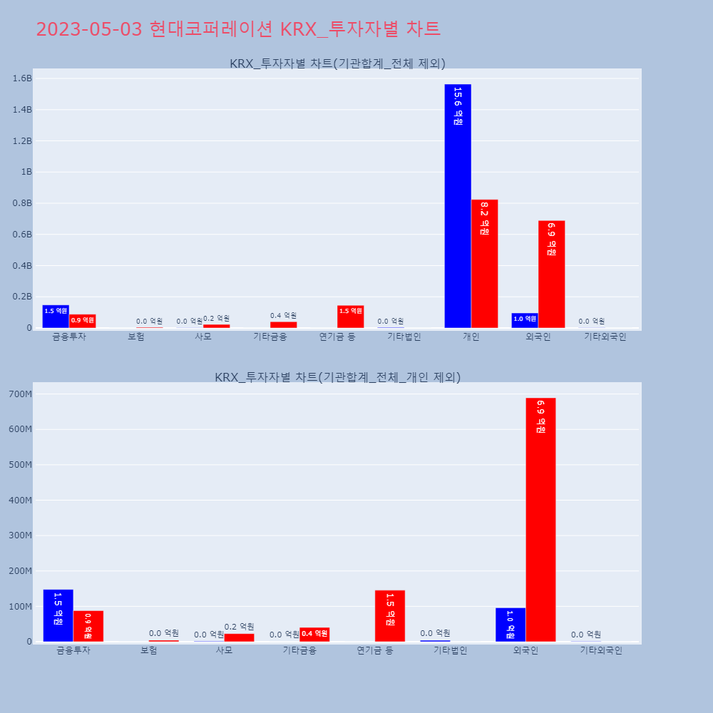 | 투자기관 | 매도량/금액(백) | 매수량/금액(백) | 순매수량/금액(백) |