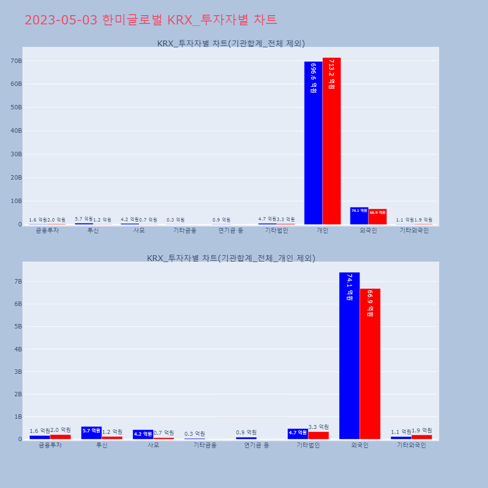 | 투자기관 | 매도량/금액(백) | 매수량/금액(백) | 순매수량/금액(백) |