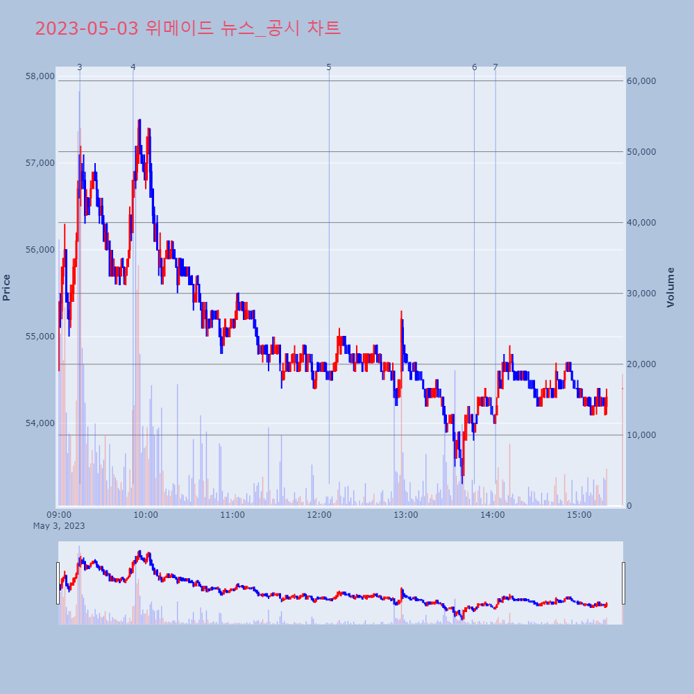 | 7 | [생생한 주식쇼 생쇼] 위메이드 (112040) [생생한 주식쇼 생쇼] 위메이드 (112040)[ⓒ 매 | 매일경제 | 위메이드 | 2023-05-03 14:02:08 |
