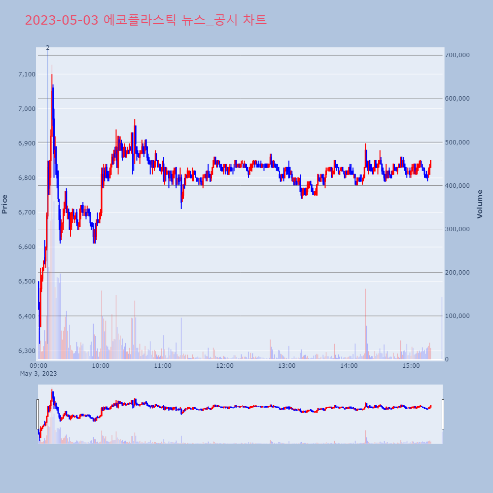 | 2 | 에코플라스틱, +2.14% 상승폭 확대에코플라스틱이 상승폭을 확대하고 있다. 전일 대비 2. | 조선경제 | 에코플라스틱 | 2023-05-03 09:08:54 |