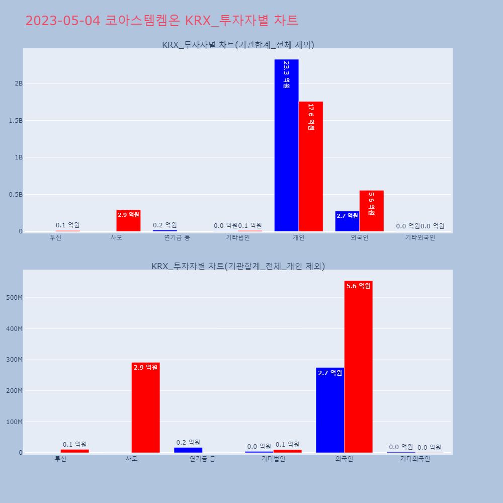 투자기관 | 매도량/금액(백) | 매수량/금액(백) | 순매수량/금액(백) |