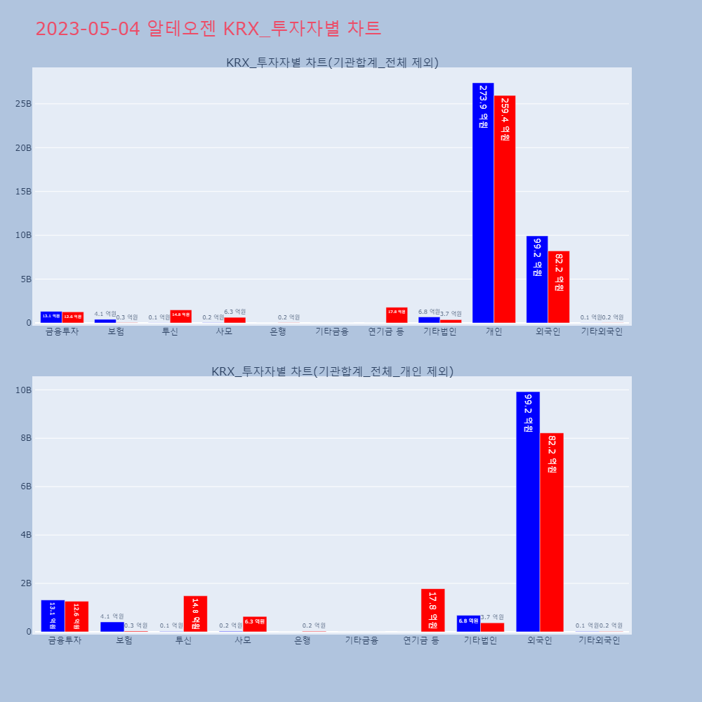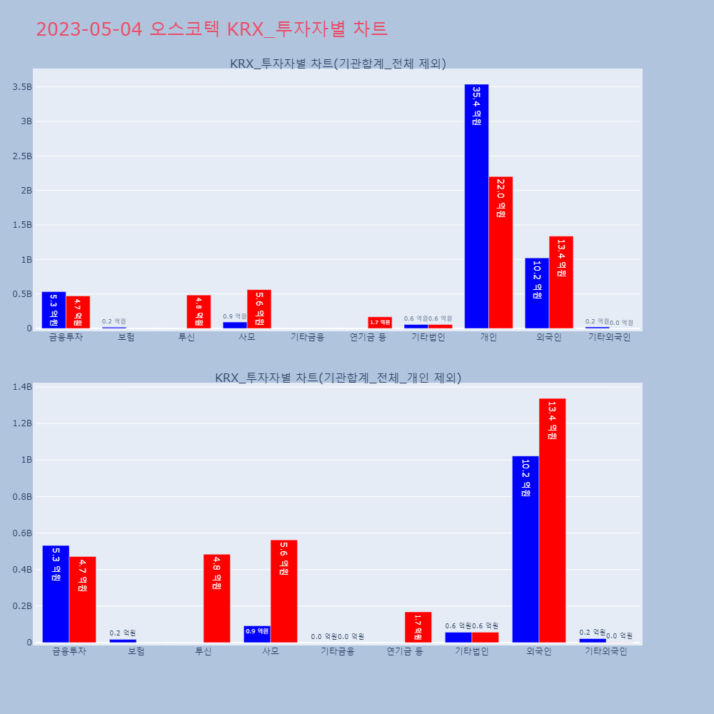투자기관 | 매도량/금액(백) | 매수량/금액(백) | 순매수량/금액(백) |
