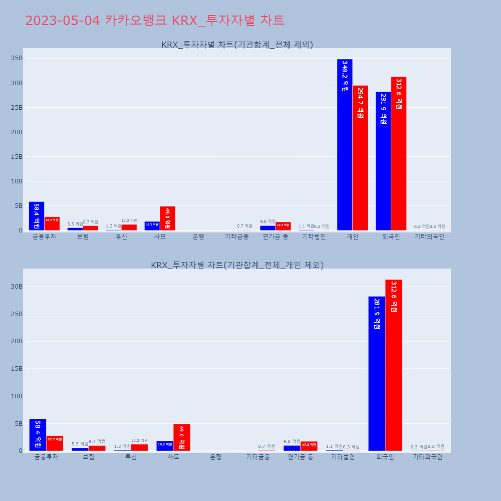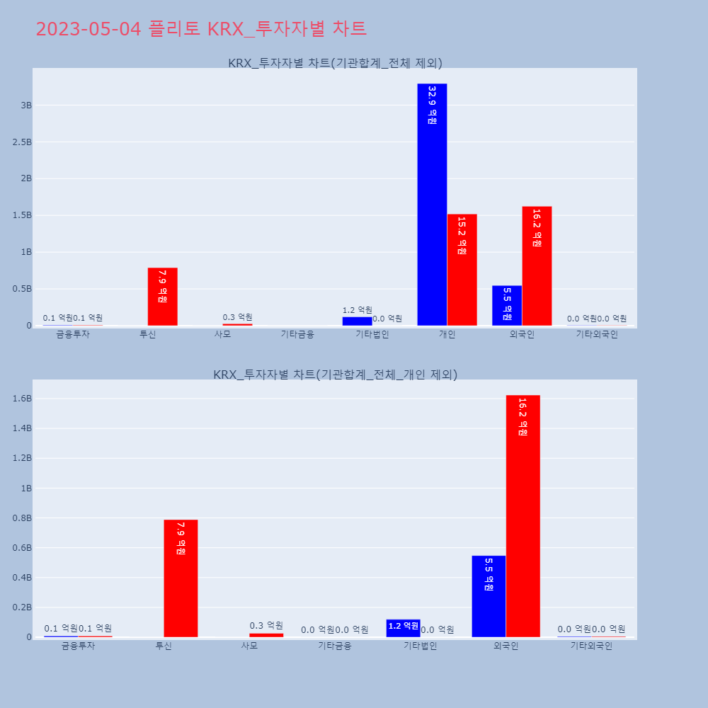 | 투자기관 | 매도량/금액(백) | 매수량/금액(백) | 순매수량/금액(백) |
