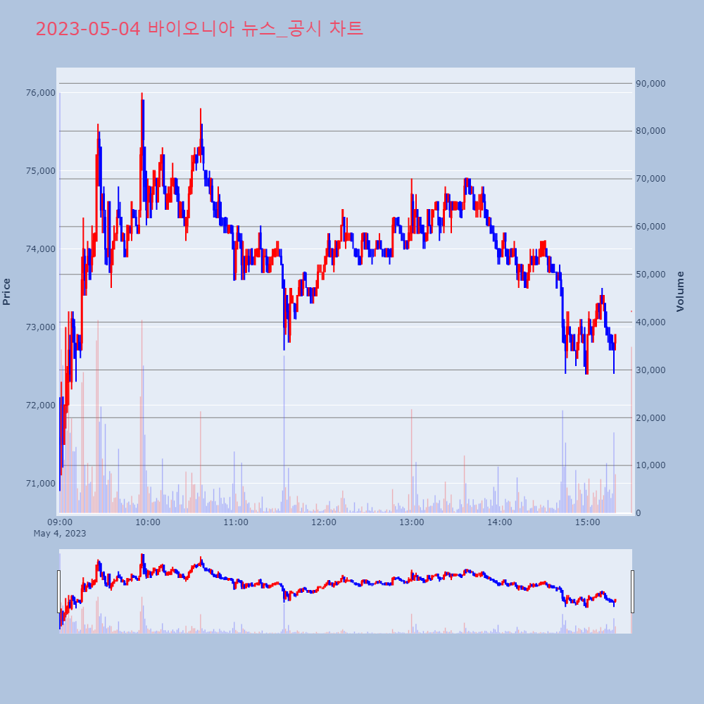 | 3 | 카나리아바이오, +7.56% VI 발동카나리아바이오가 VI가 발동했다. 전일 대비 7.56% | 조선경제 | 카나리아바이오 | 2023-05-03 13:13:05 |