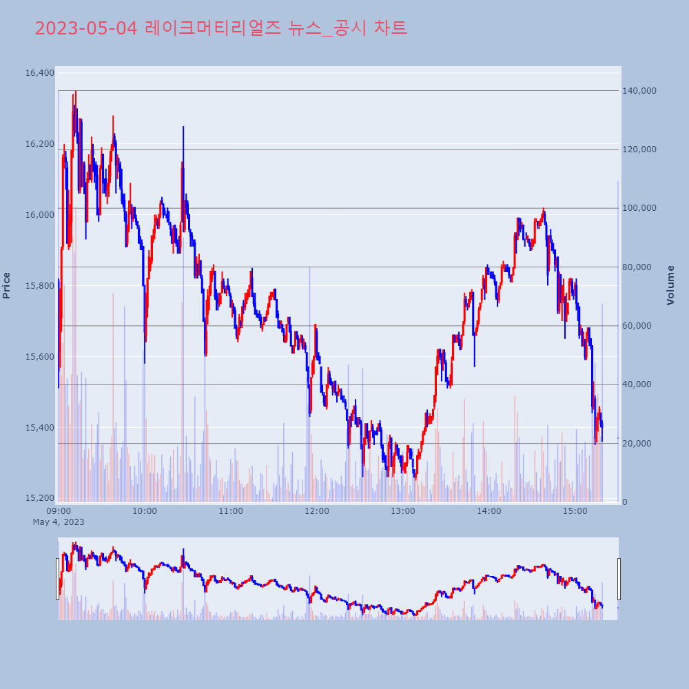| 4 | KBG, -12.42% VI 발동KBG가 VI가 발동했다. 전일 대비 12.42% 하락 | 조선경제 | KBG | 2023-05-04 15:07:41 |