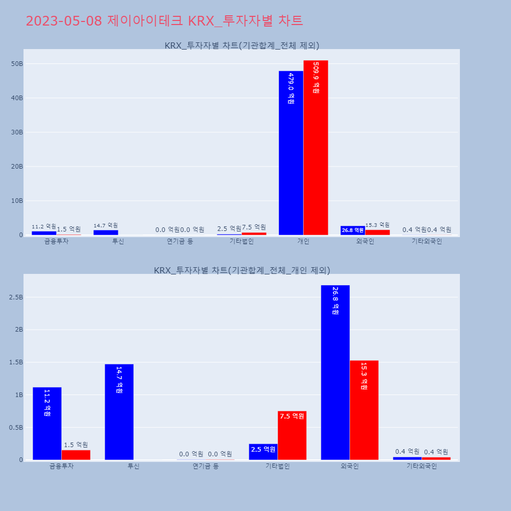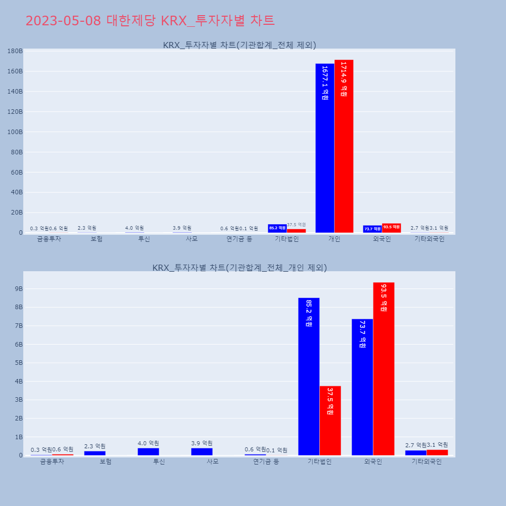 투자기관 | 매도량/금액(백) | 매수량/금액(백) | 순매수량/금액(백) |
