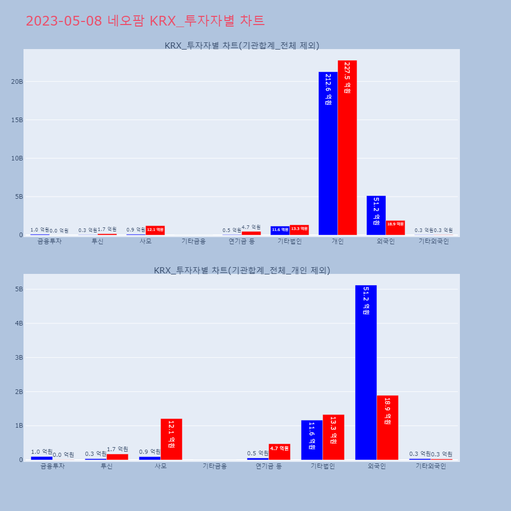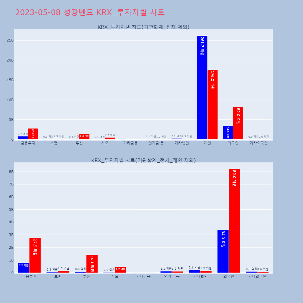 투자기관 | 매도량/금액(백) | 매수량/금액(백) | 순매수량/금액(백) |