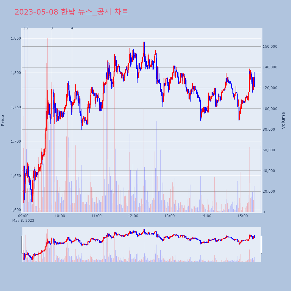 3 | 한탑, +14.51% VI 발동한탑이 VI가 발동했다. 전일 대비 14.51% 상승한 | 조선경제 | 한탑 | 2023-05-08 09:47:05 |