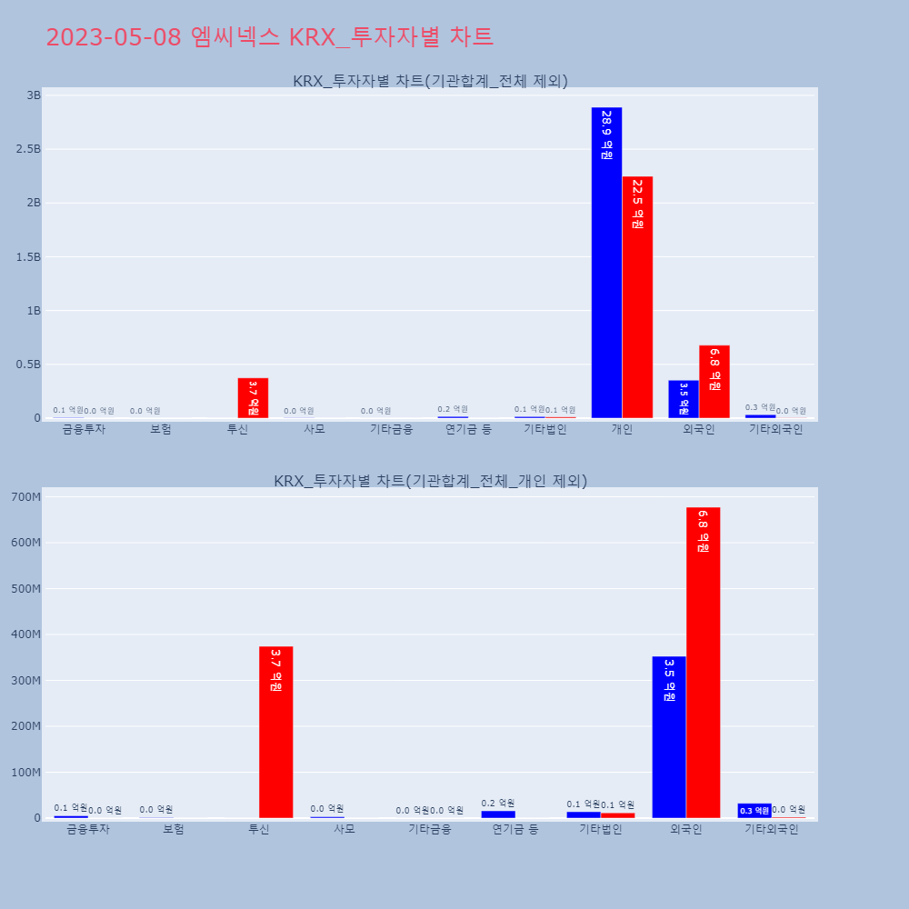 투자기관 | 매도량/금액(백) | 매수량/금액(백) | 순매수량/금액(백) |