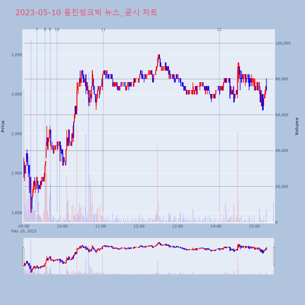 웅진씽크빅(095720) -2.91%[종가: 3,000원]