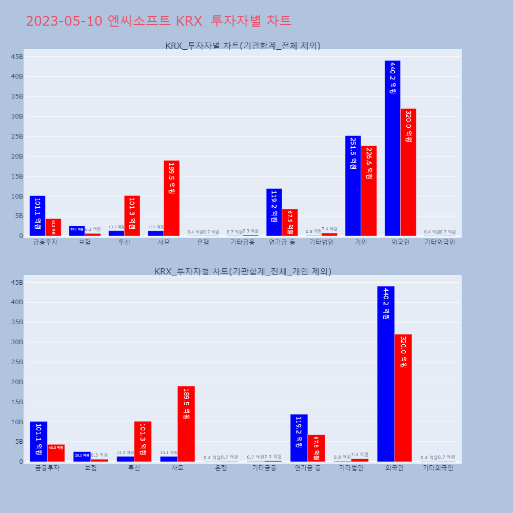 | 투자기관 | 매도량/금액(백) | 매수량/금액(백) | 순매수량/금액(백) |