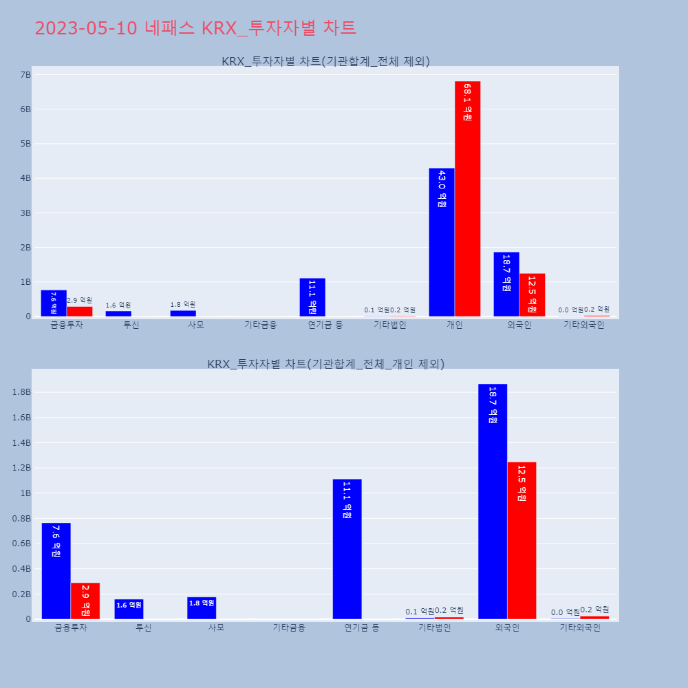 | 투자기관 | 매도량/금액(백) | 매수량/금액(백) | 순매수량/금액(백) |