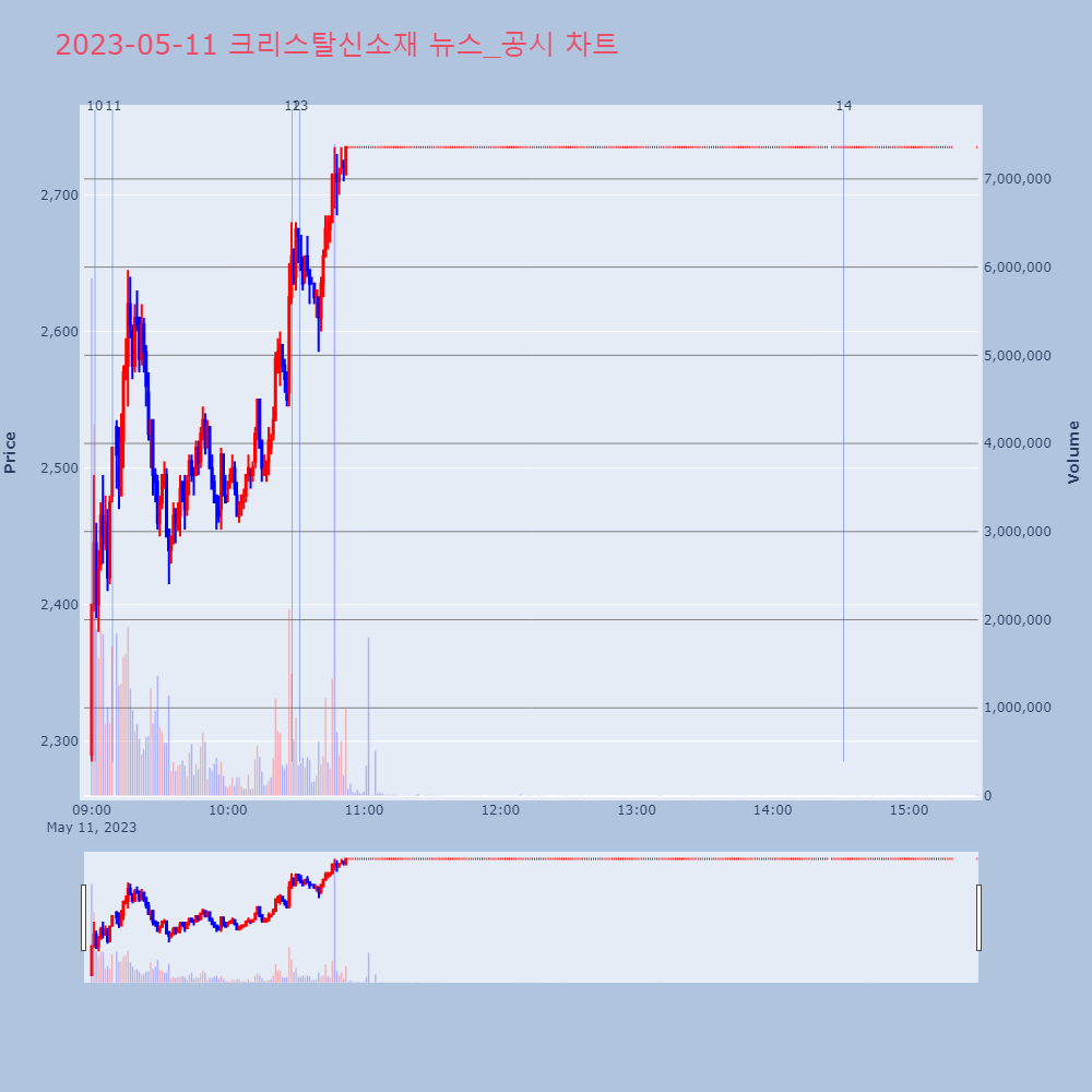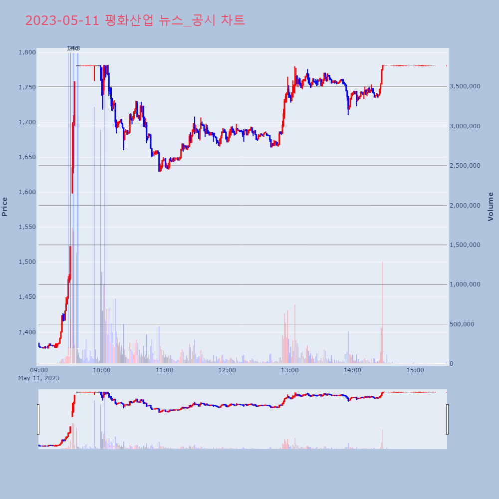 | 3 | 평화산업, +11.09% VI 발동평화산업이 VI가 발동했다. 전일 대비 11.09% 상 | 조선경제 | 평화산업 | 2023-05-11 09:30:16 |