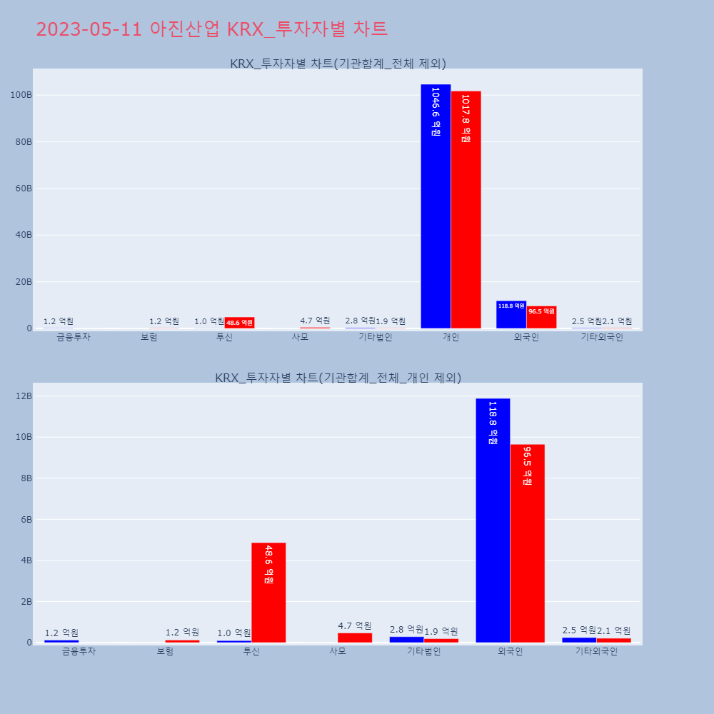 | 투자기관 | 매도량/금액(백) | 매수량/금액(백) | 순매수량/금액(백) |