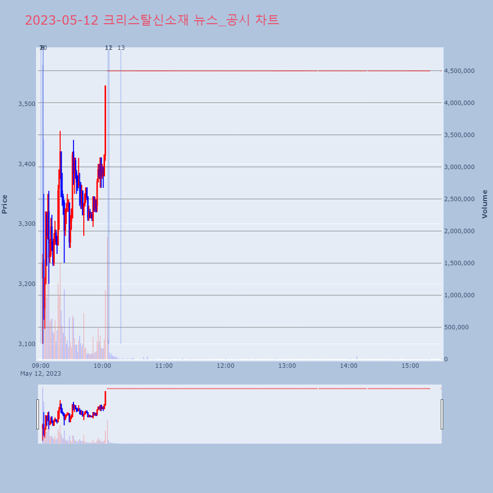 | 13 | [장중수급포착] 크리스탈신소재, 외국인 33.70만 주 대량 순매수... 주가 +[서울=뉴스핌] 로보뉴스 = 12일 10시 15분 현재 | 뉴스핌 | 크리스탈신소재 | 2023-05-12 10:18:06 |