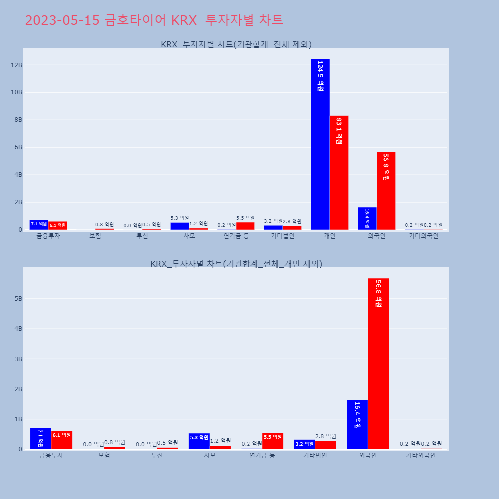 | 투자기관 | 매도량/금액(백) | 매수량/금액(백) | 순매수량/금액(백) |