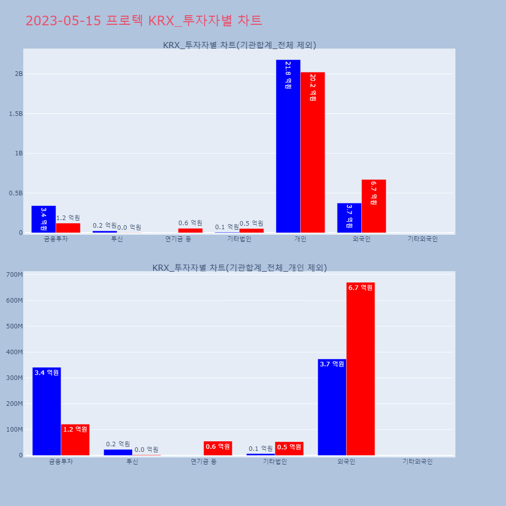 투자기관 | 매도량/금액(백) | 매수량/금액(백) | 순매수량/금액(백) |