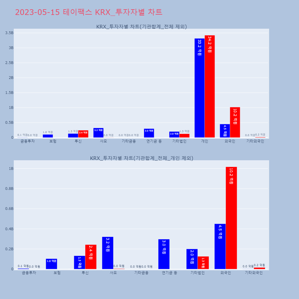 | 투자기관 | 매도량/금액(백) | 매수량/금액(백) | 순매수량/금액(백) |