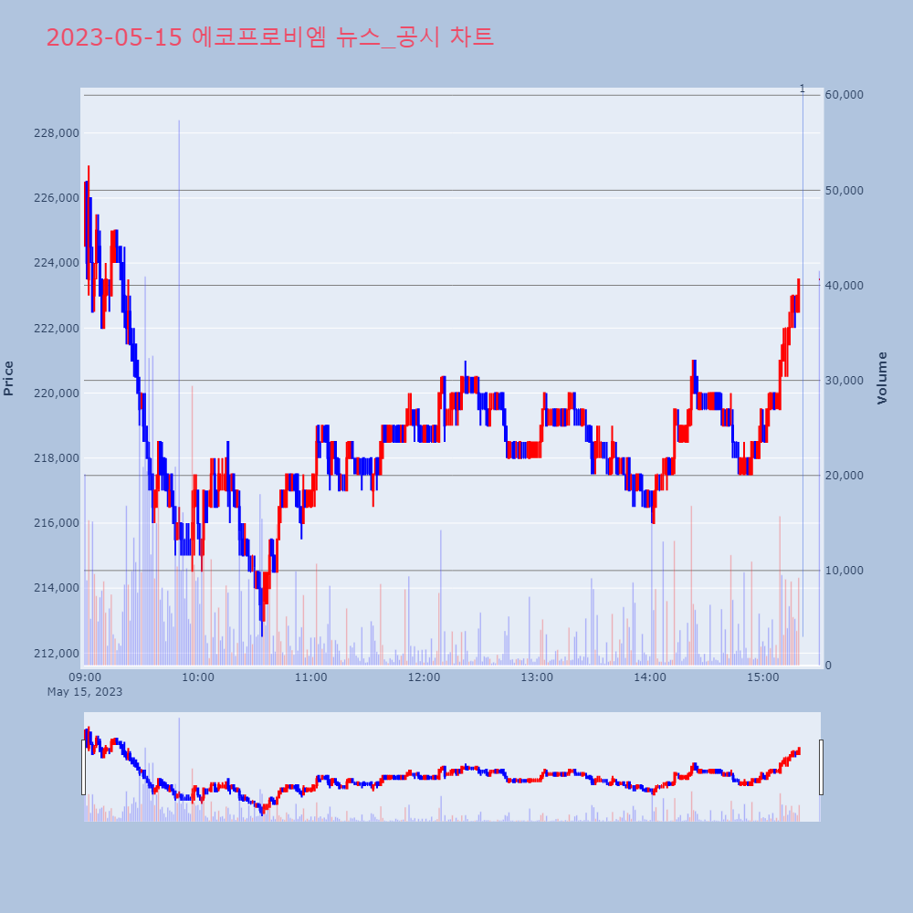 | 2 | 에코프로비엠, 당해사업연도 1분기 연결 영업이익 1,073.27억원 에코프로비엠은 분기보고서를 통해 당해사업연도 1분기 연 | 인포스탁 | 에코프로비엠 | 2023-05-15 15:57:59 |