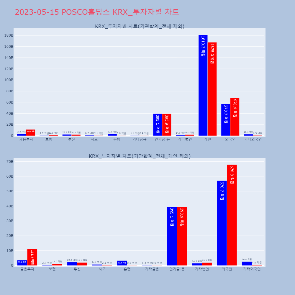 투자기관 | 매도량/금액(백) | 매수량/금액(백) | 순매수량/금액(백) |