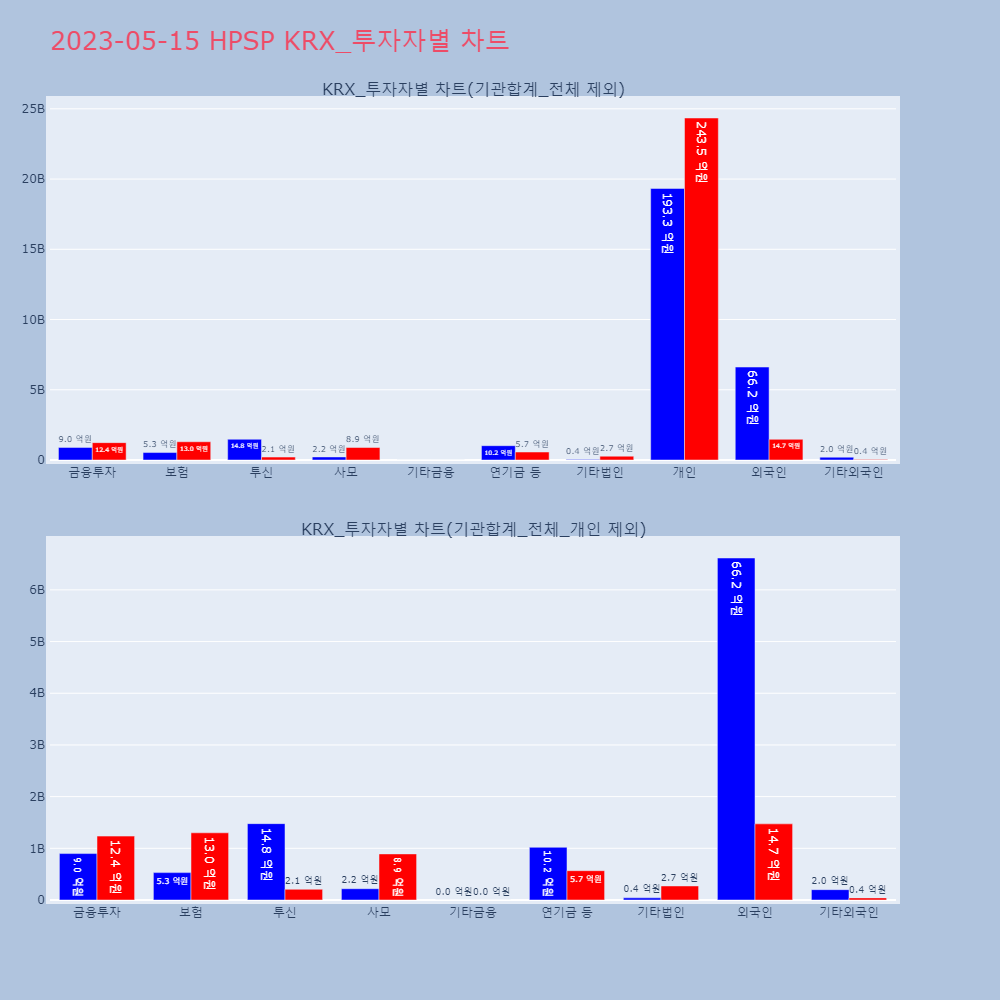 | 투자기관 | 매도량/금액(백) | 매수량/금액(백) | 순매수량/금액(백) |