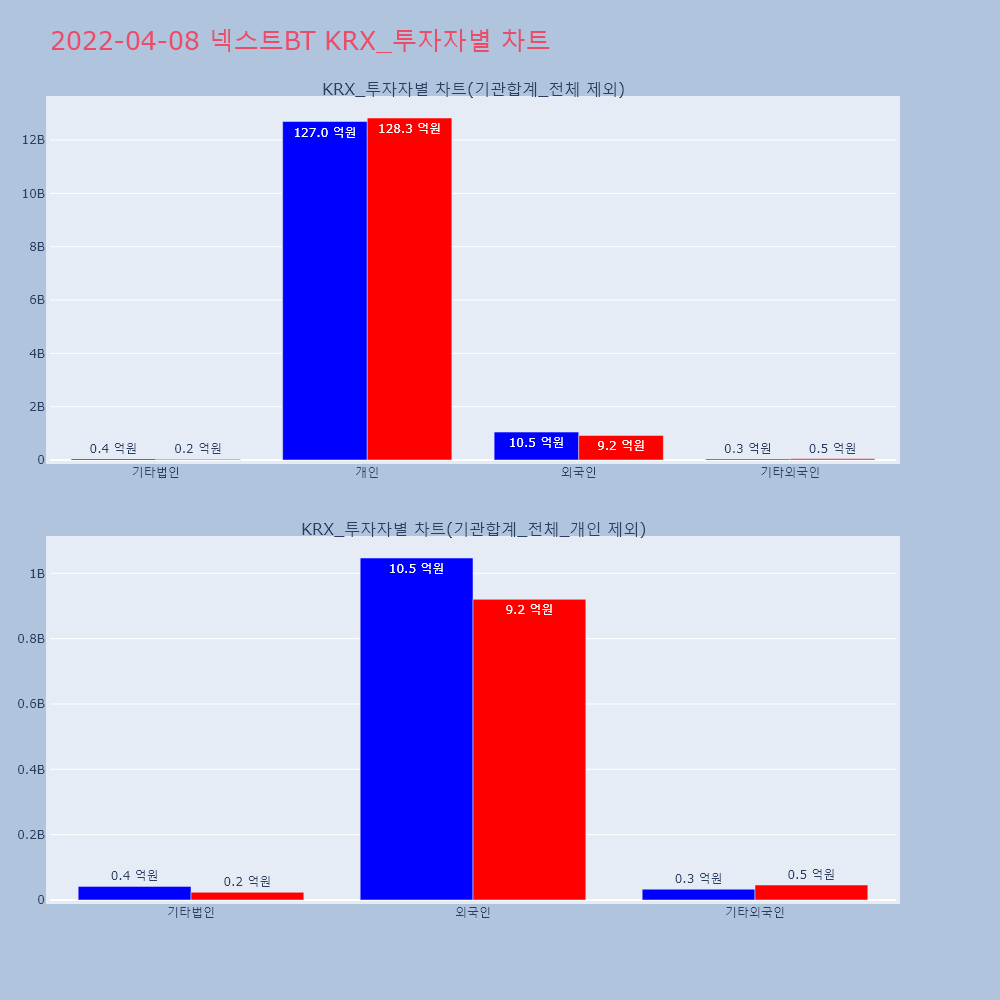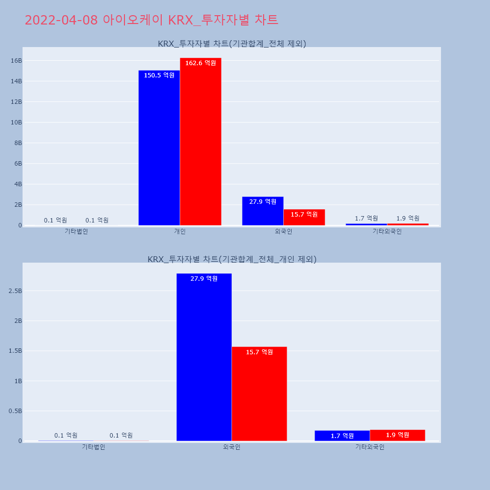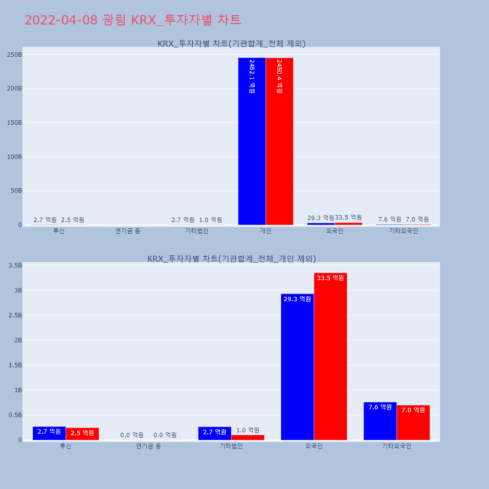 | 투자기관 | 거래량_매도 | 거래량_매수 | 거래량_순매수 | 거래대금_매도 | 거래대금_매수 | 거래대금_순매수 |
