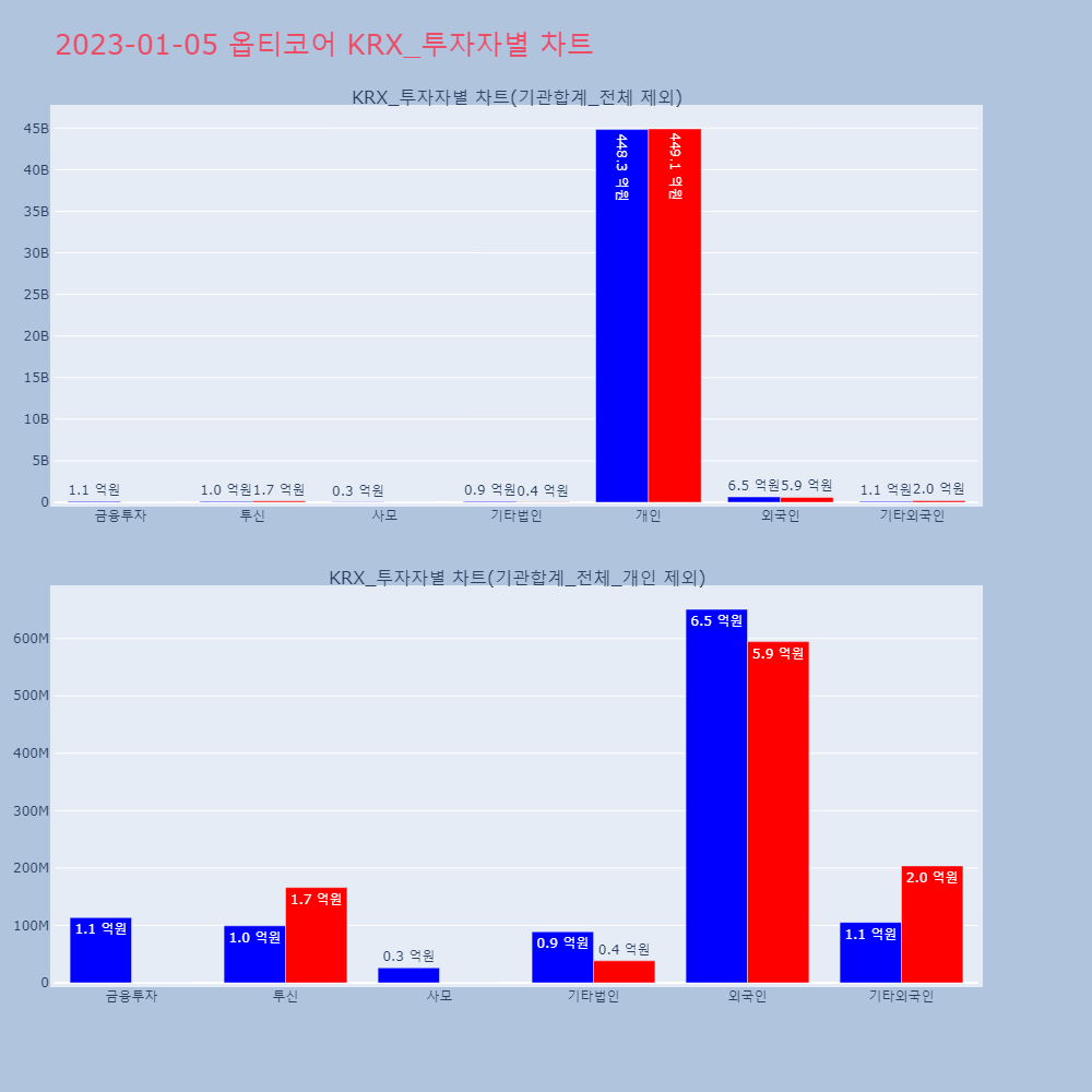 | 투자기관 | 매도량/금액(백) | 매수량/금액(백) | 순매수량/금액(백) |