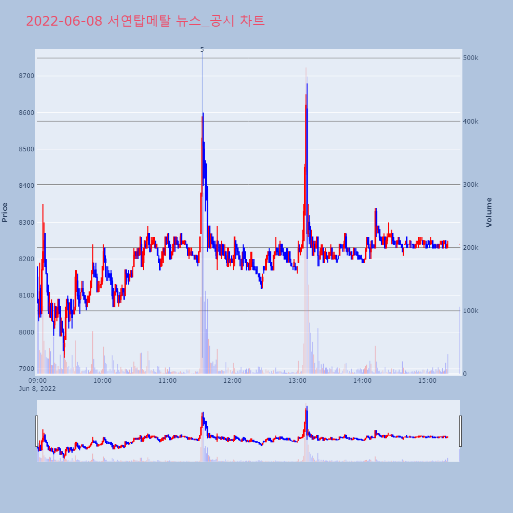| 0 | (주)서연탑메탈 단기과열종목(3거래일 단일가매매) 지정 | KOSCOM | 2022.06.08 |