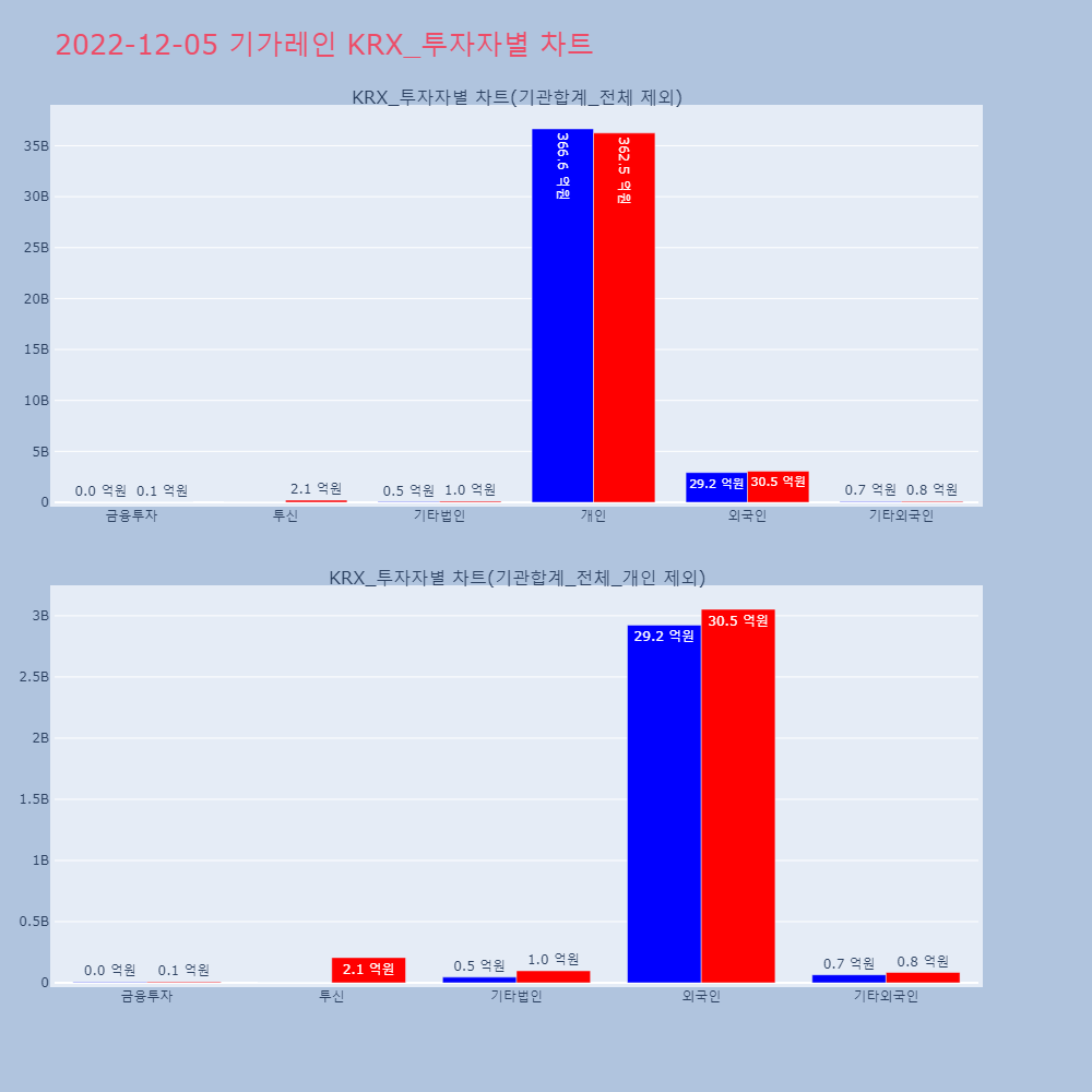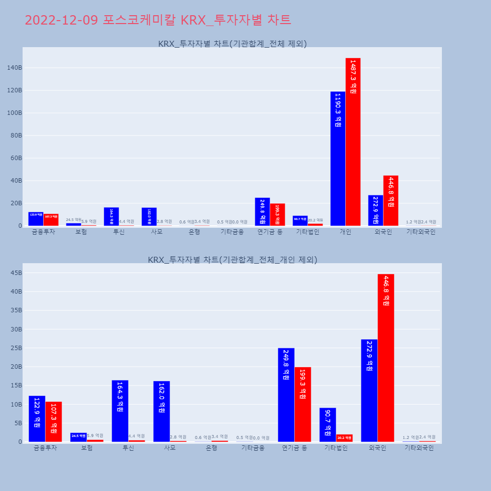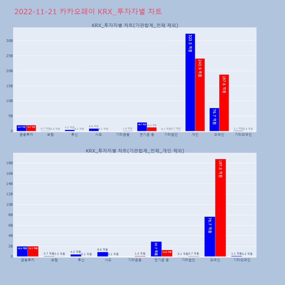 | 투자기관 | 매도량/금액(백) | 매수량/금액(백) | 순매수량/금액(백) |