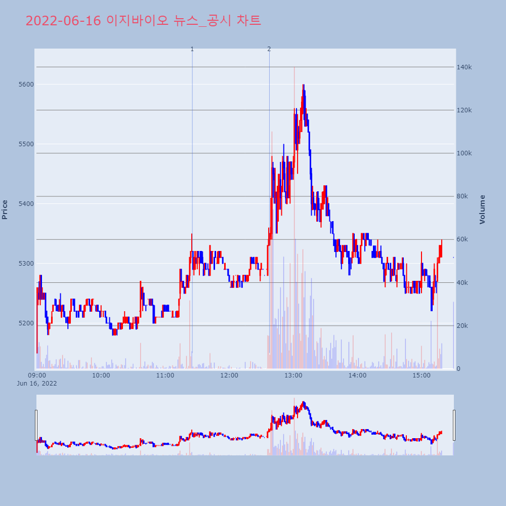| 2022-06-16 16:45:00 | 20220616800352 | 조회공시요구(현저한시황변동) |