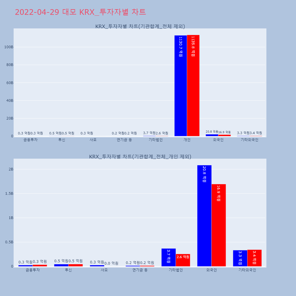 | 투자기관 | 거래량_매도 | 거래량_매수 | 거래량_순매수 | 거래대금_매도 | 거래대금_매수 | 거래대금_순매수 |