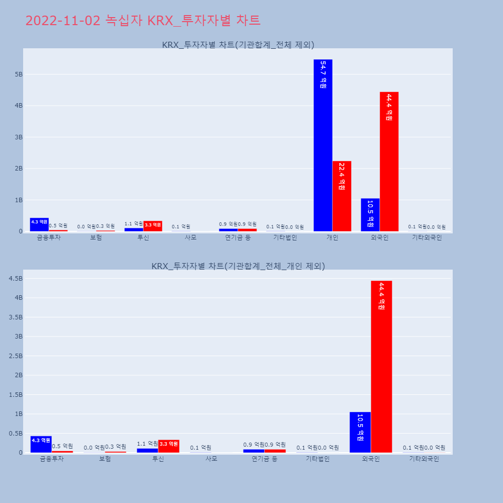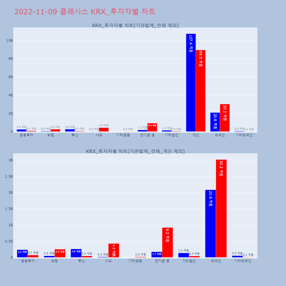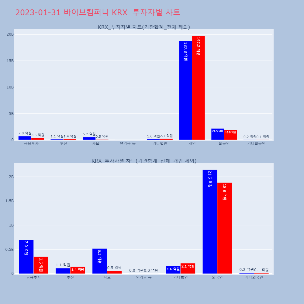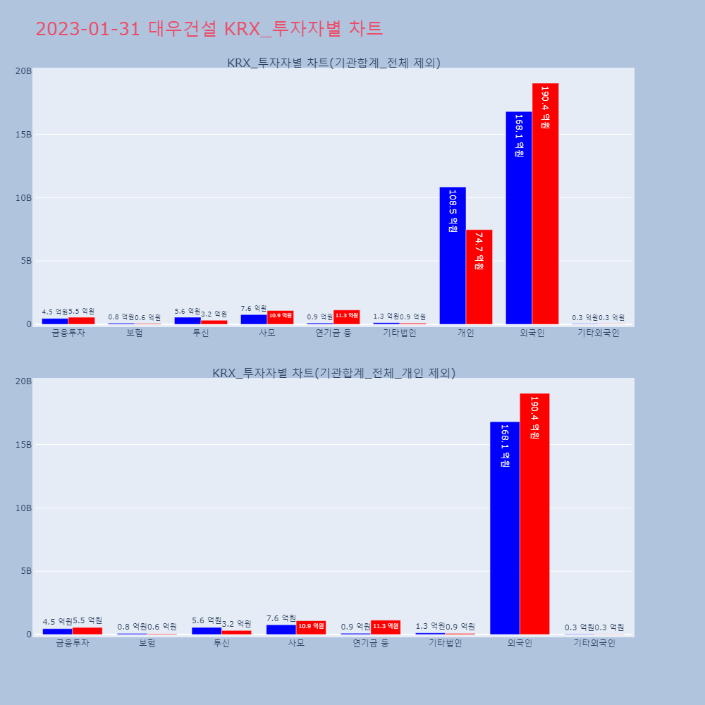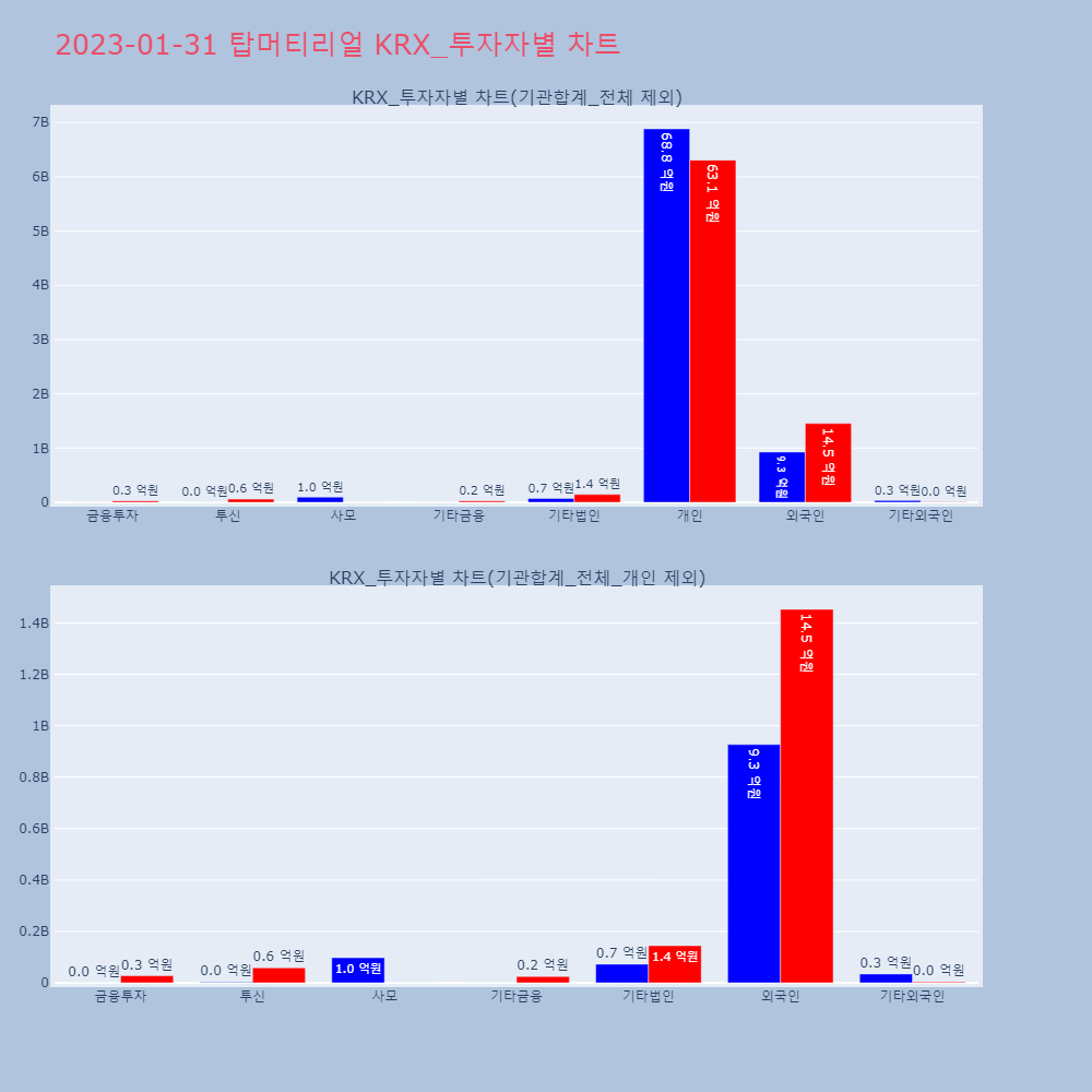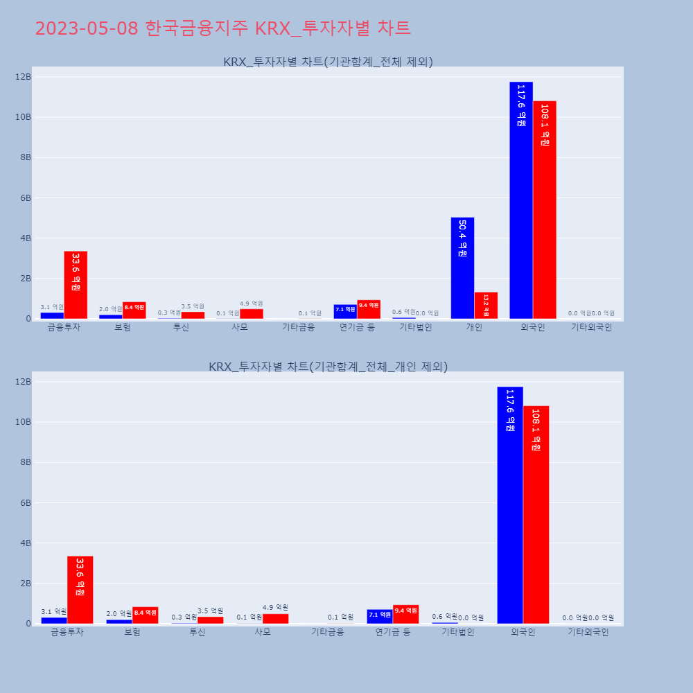| 투자기관 | 매도량/금액(백) | 매수량/금액(백) | 순매수량/금액(백) |