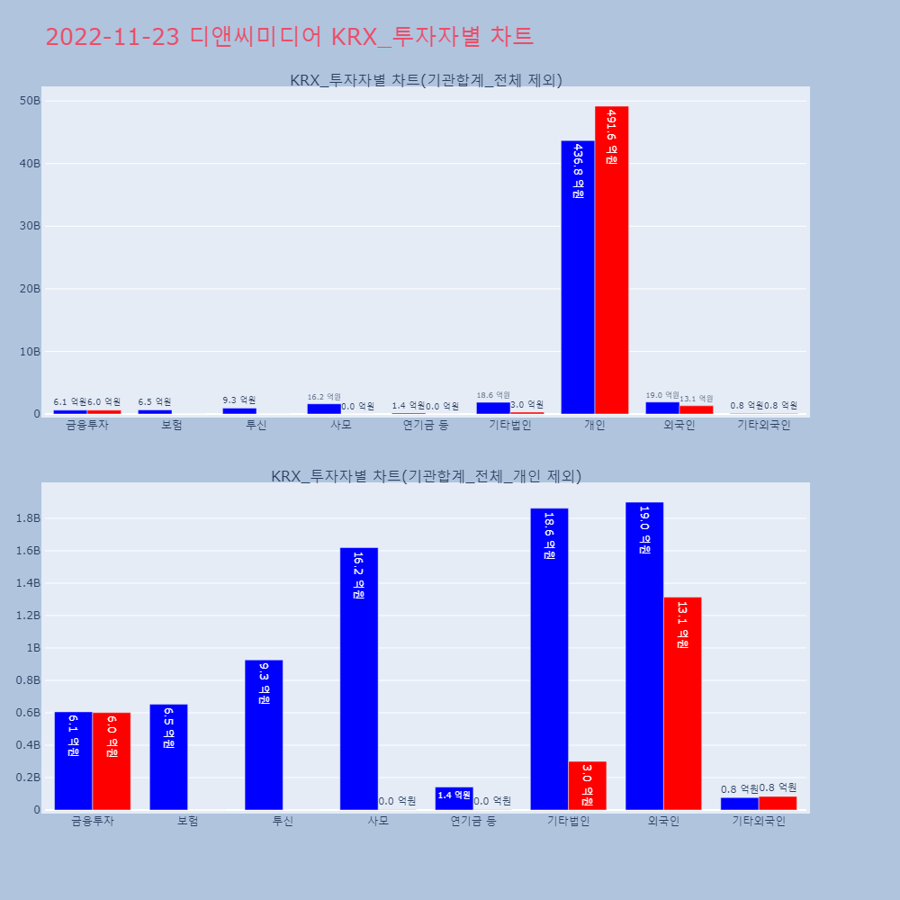 | 투자기관 | 매도량/금액(백) | 매수량/금액(백) | 순매수량/금액(백) |