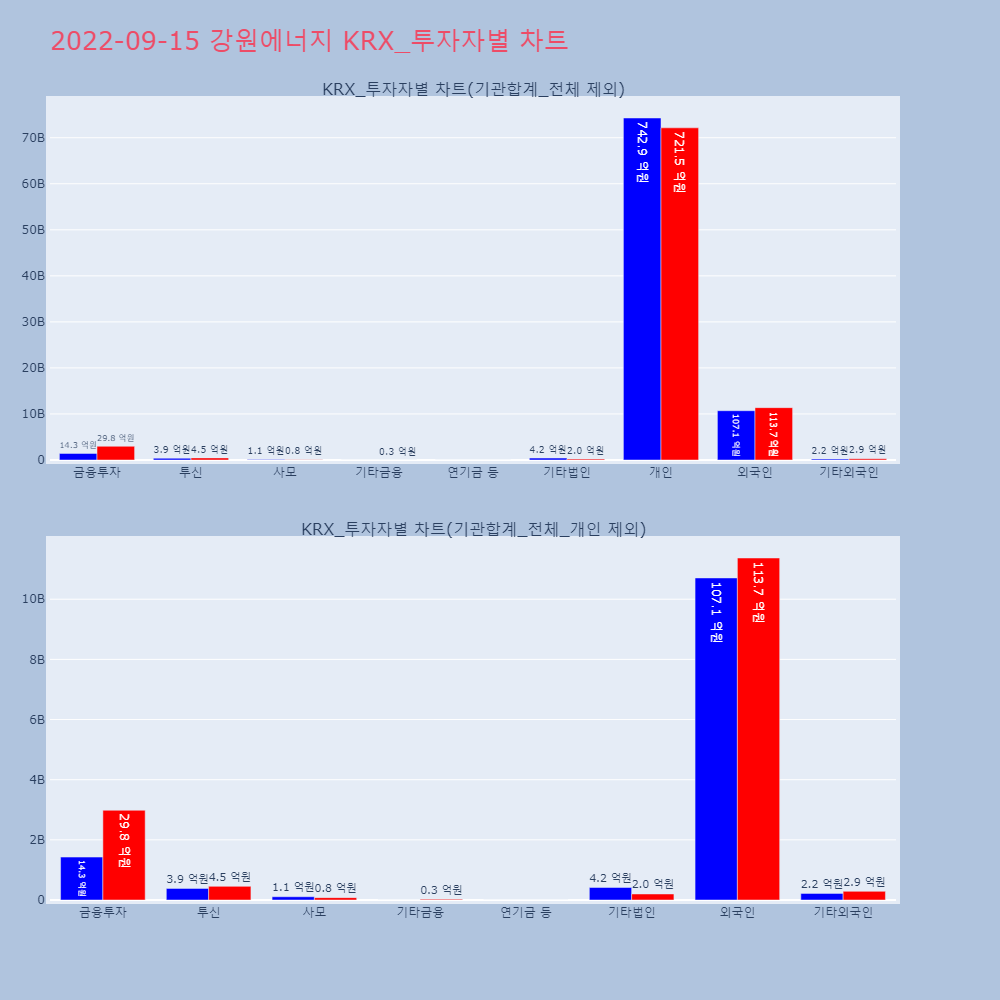 | 투자기관 | 매도량/금액(백) | 매수량/금액(백) | 순매수량/금액(백) |