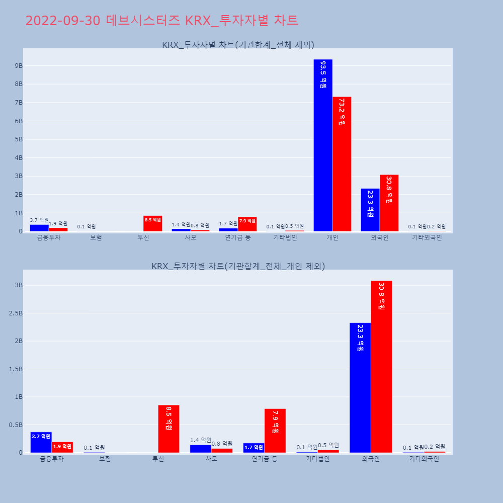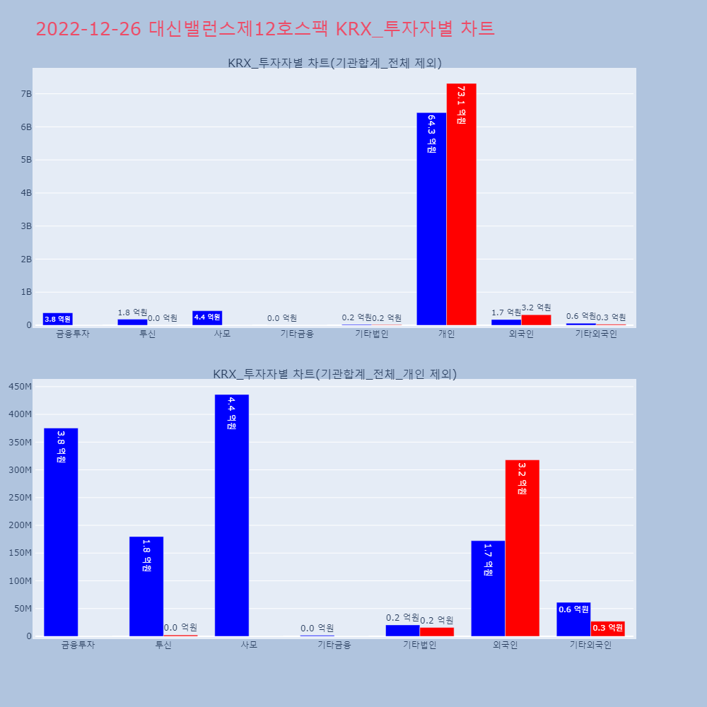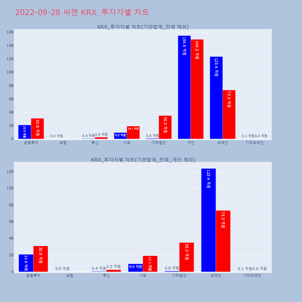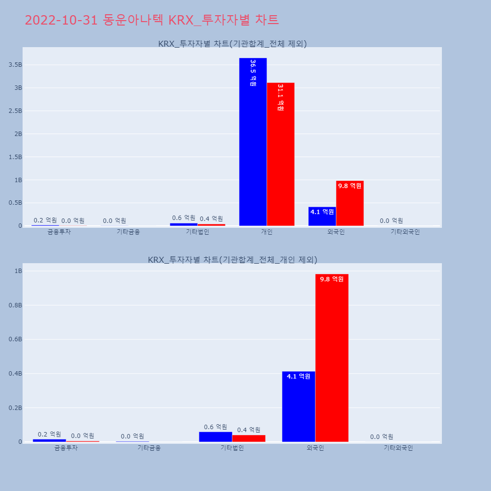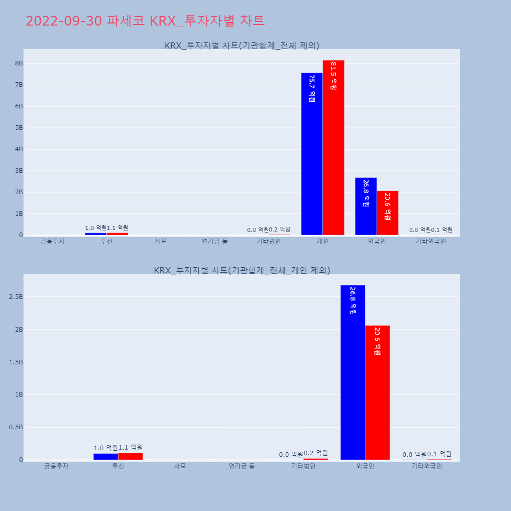 | 투자기관 | 매도량/금액(백) | 매수량/금액(백) | 순매수량/금액(백) |