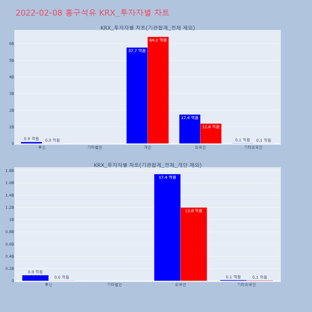 | 투자기관 | 거래량_매도 | 거래량_매수 | 거래량_순매수 | 거래대금_매도 | 거래대금_매수 | 거래대금_순매수 |