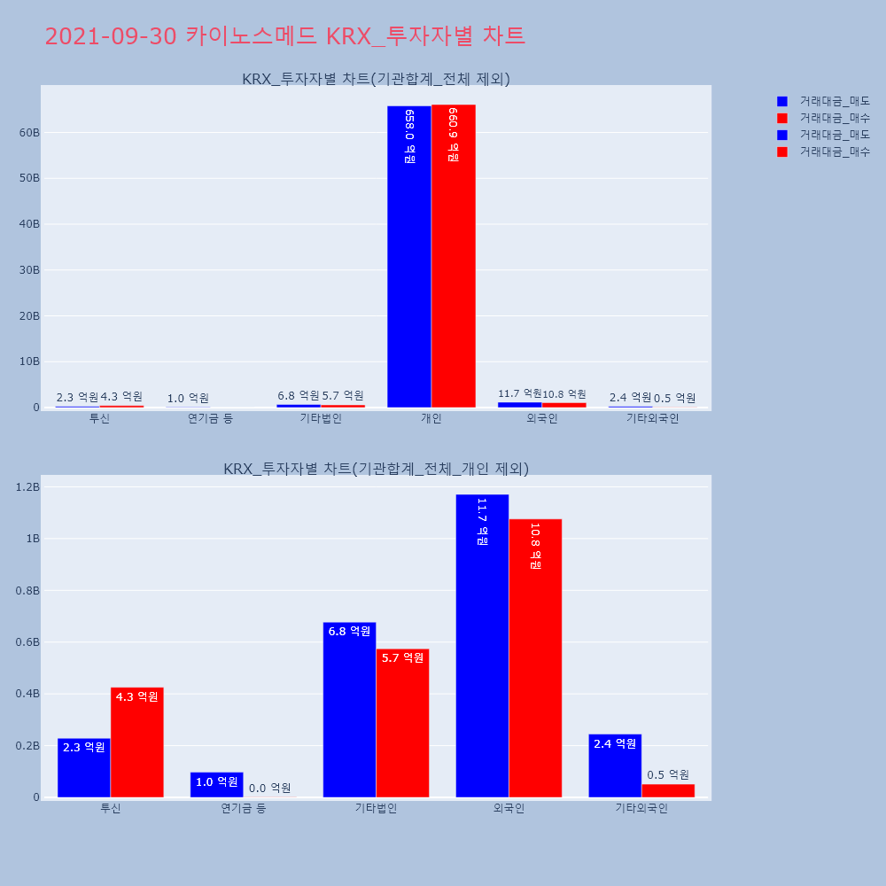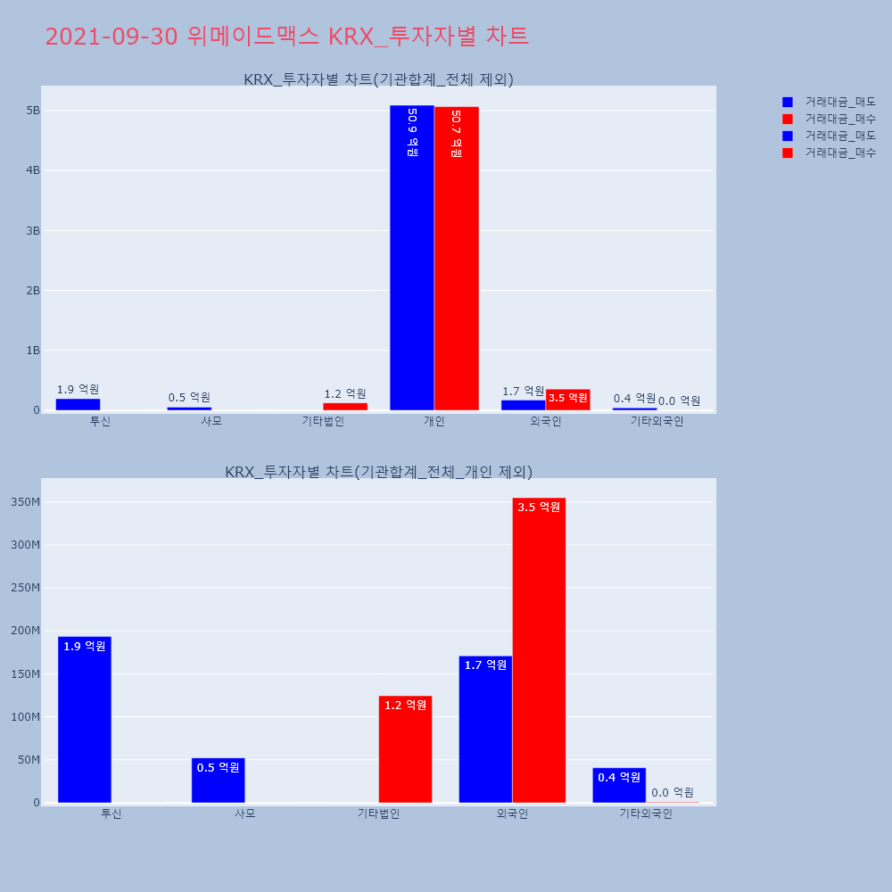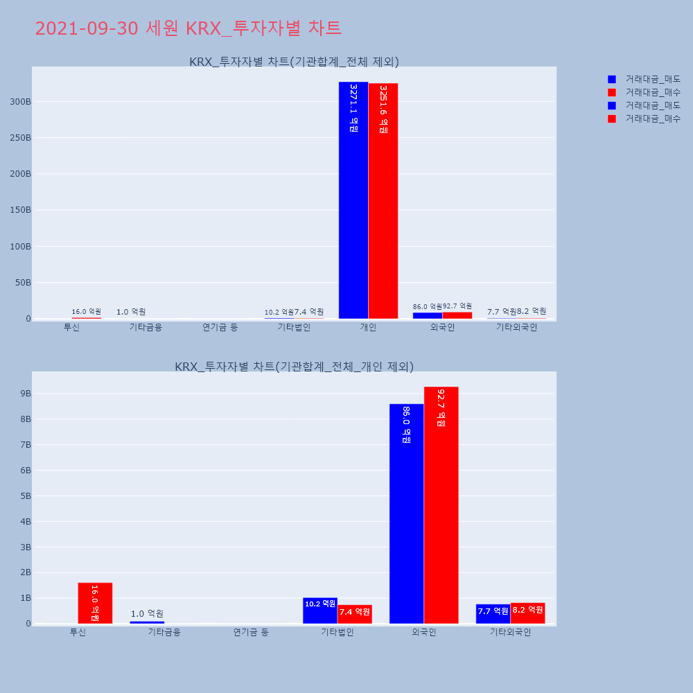 | 투자기관 | 거래량_매도 | 거래량_매수 | 거래량_순매수 | 거래대금_매도 | 거래대금_매수 | 거래대금_순매수 |