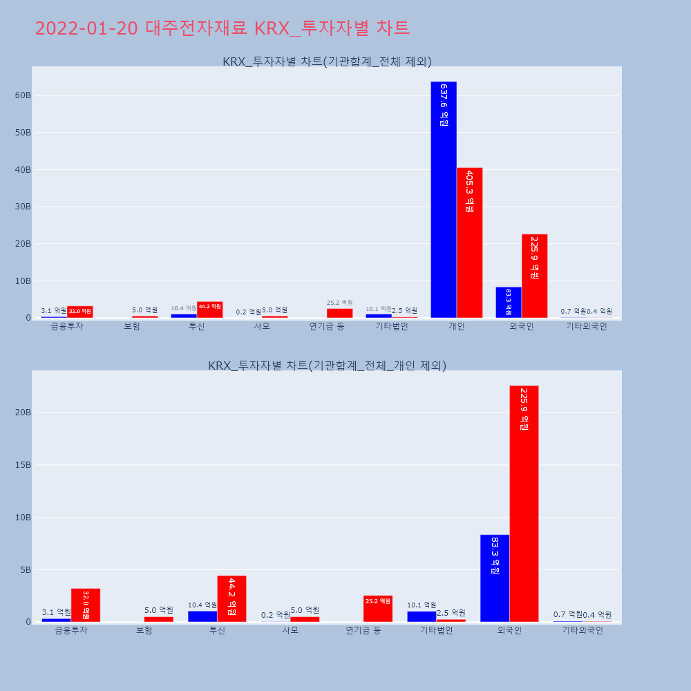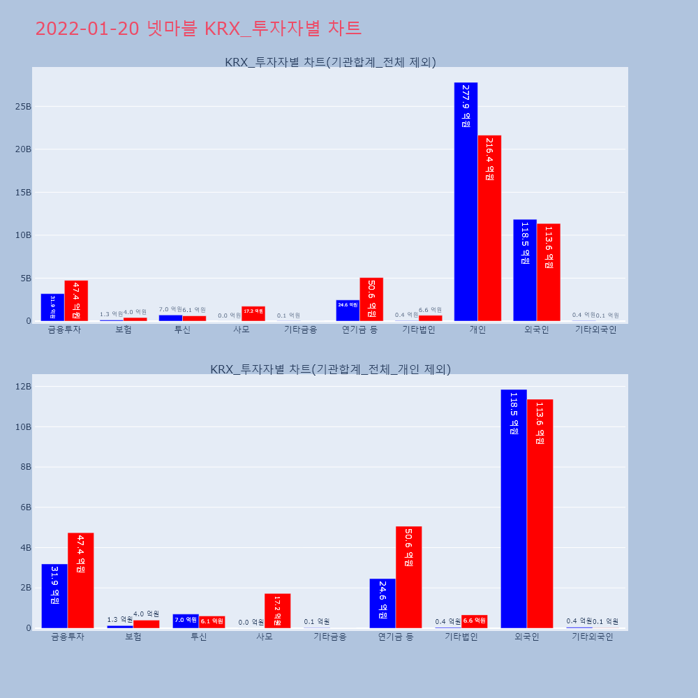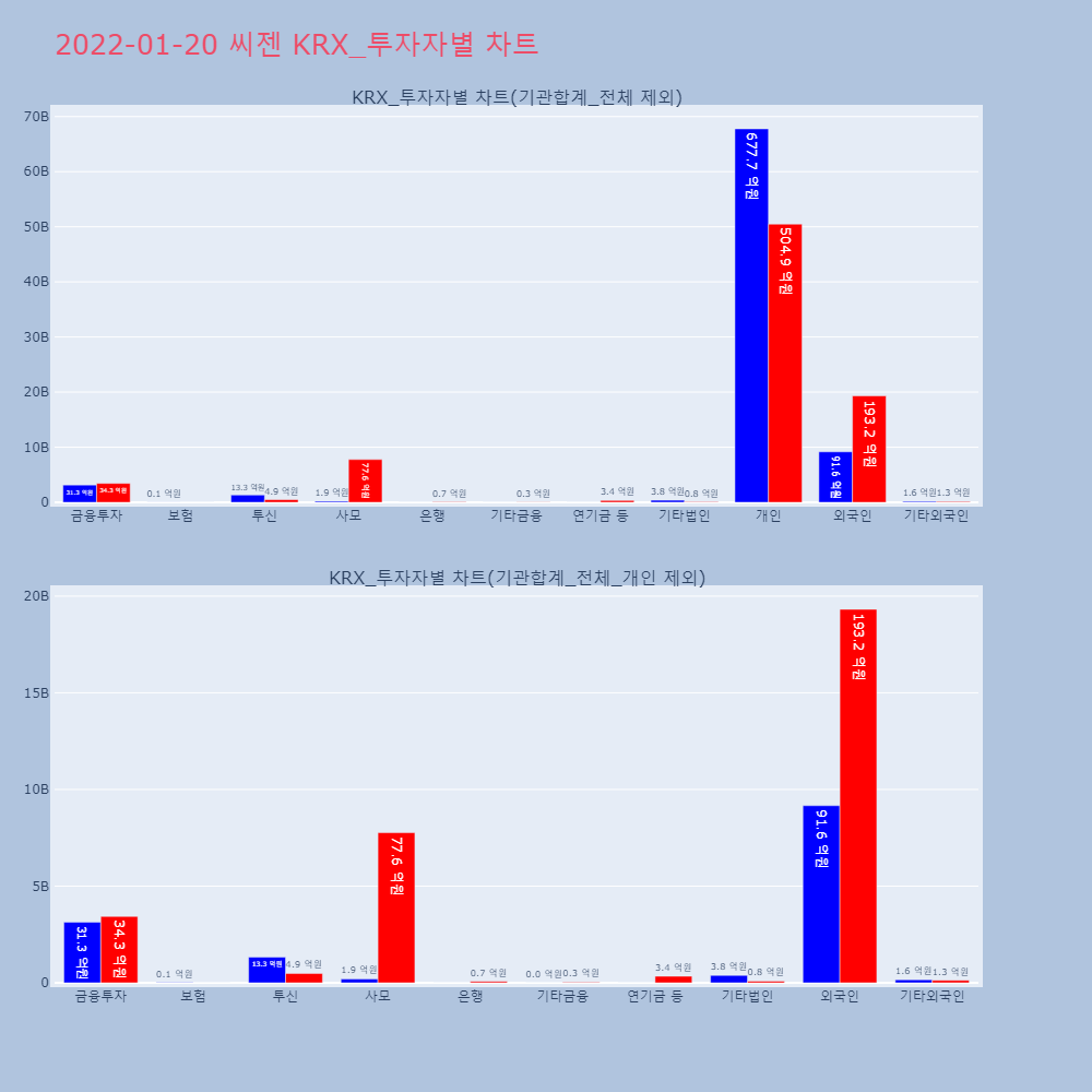 | 투자기관 | 거래량_매도 | 거래량_매수 | 거래량_순매수 | 거래대금_매도 | 거래대금_매수 | 거래대금_순매수 |