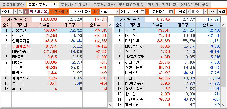 | 외국인 | 66,561 | 147,885 | 81,324 | 2,712,901,000 | 6,029,755,500 | 3,316,854,500 |
